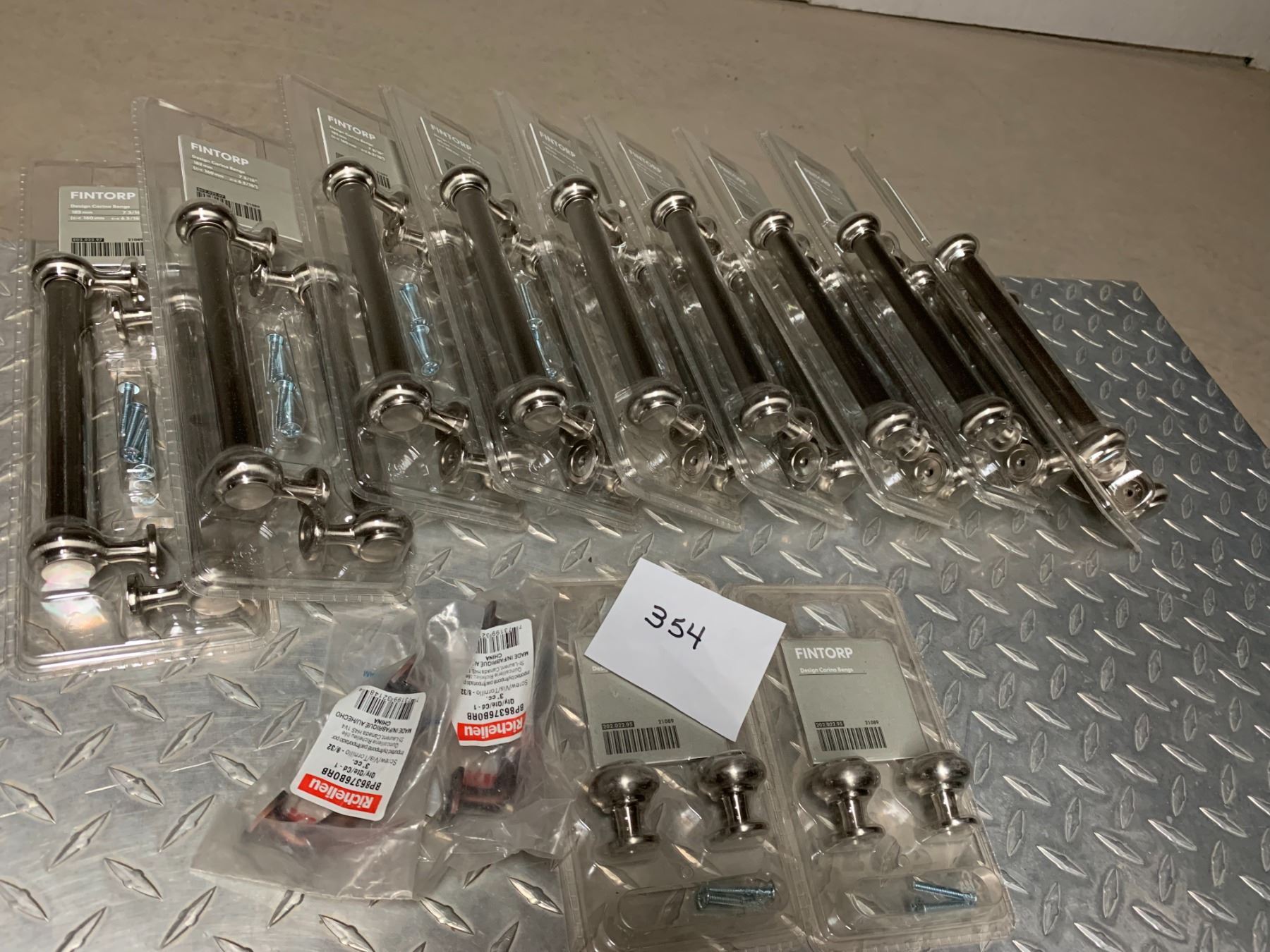 9 large handles, 2 packages of knobs and 2 smaller handles