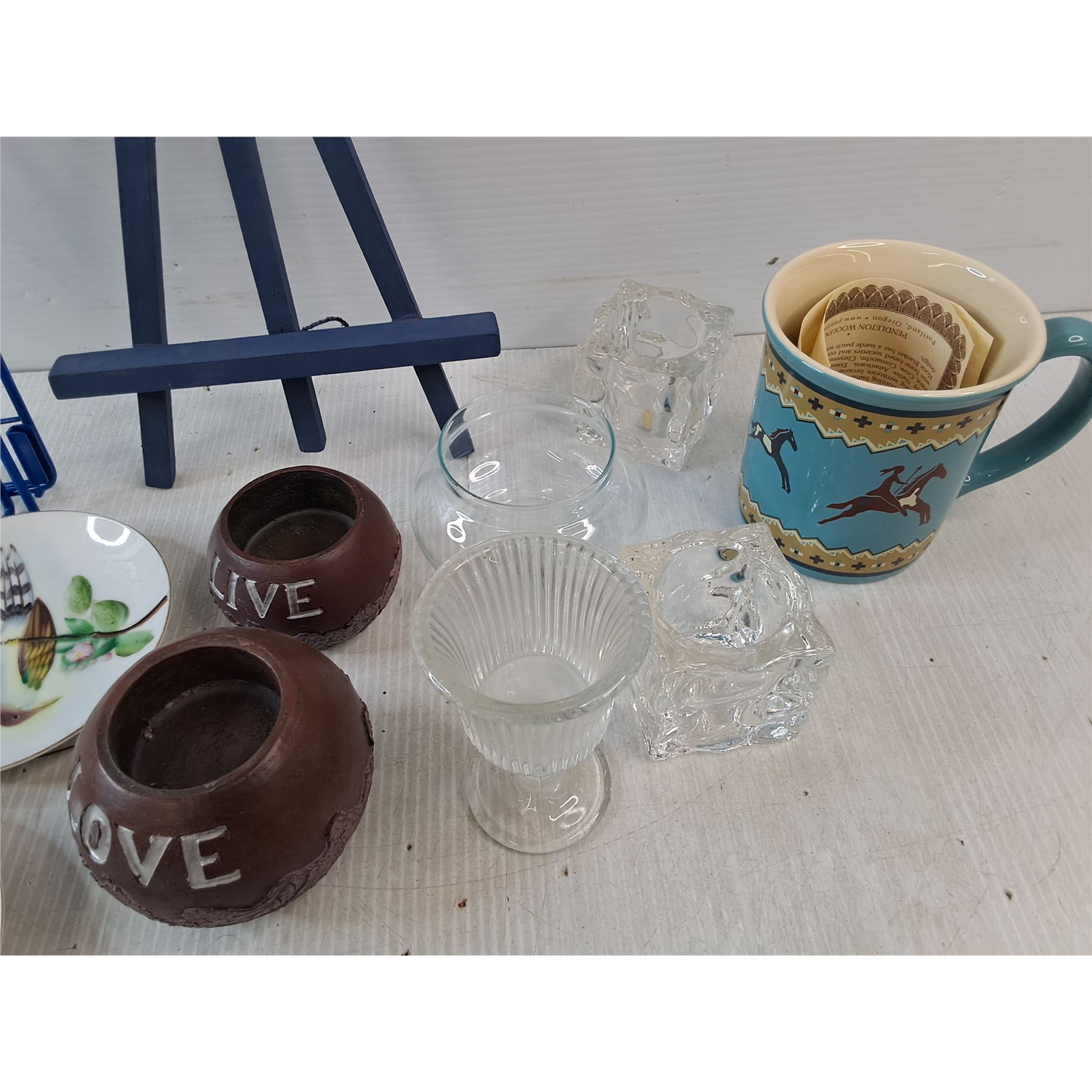Various Candle Holders, Miniature Easel, Ceramic Mug