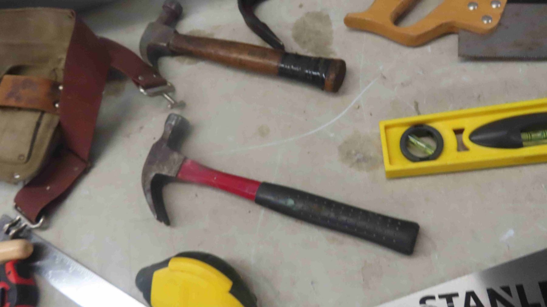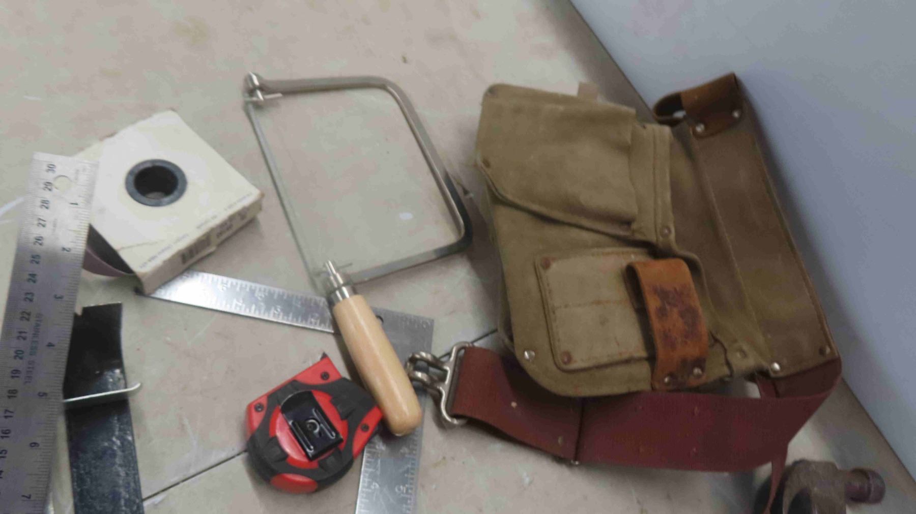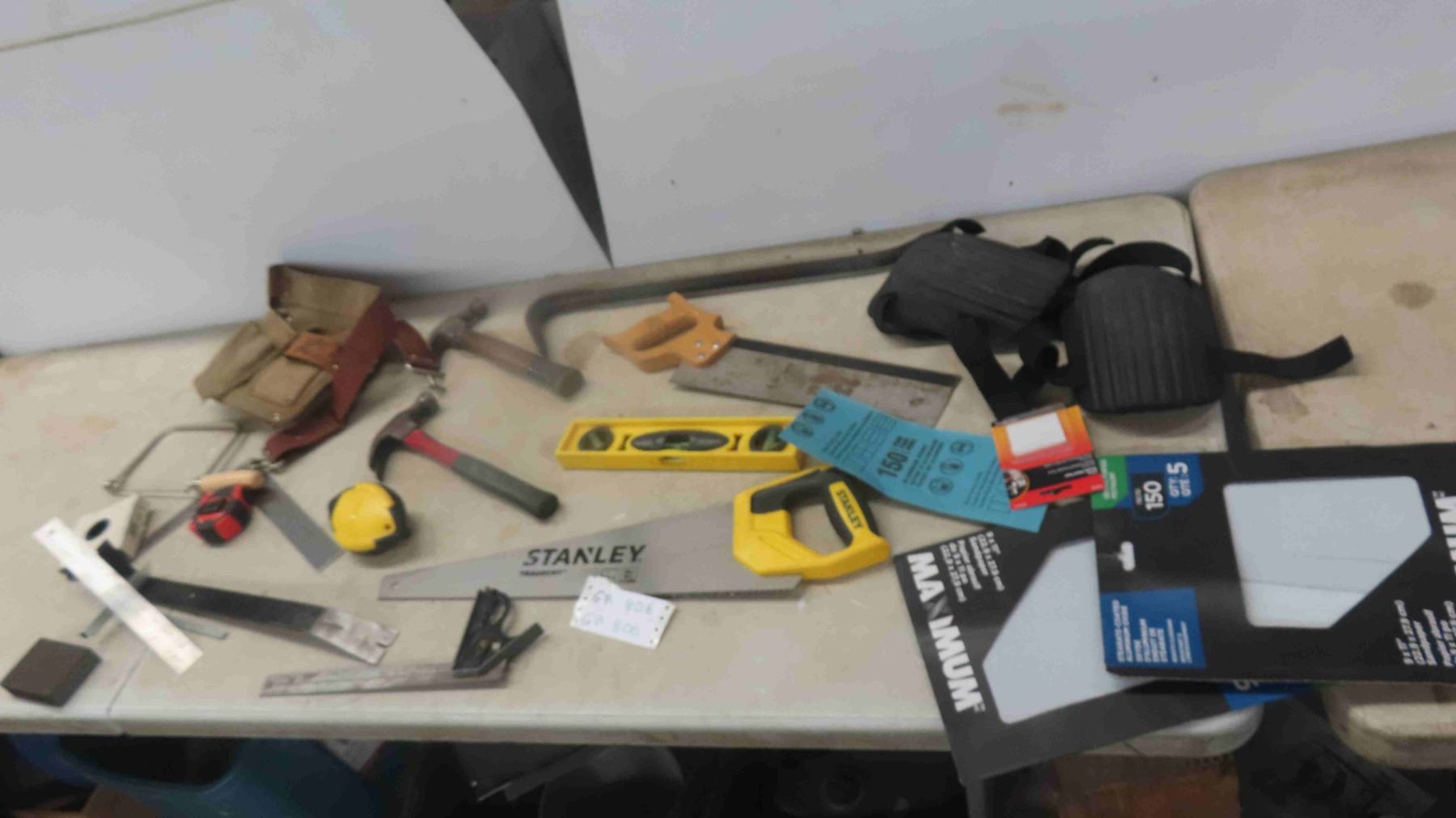 Various Carpentry Tools : Saws, Levels, Tool Belt, Hammer, Nail Puller, Squares & More