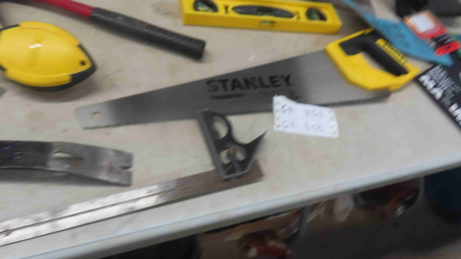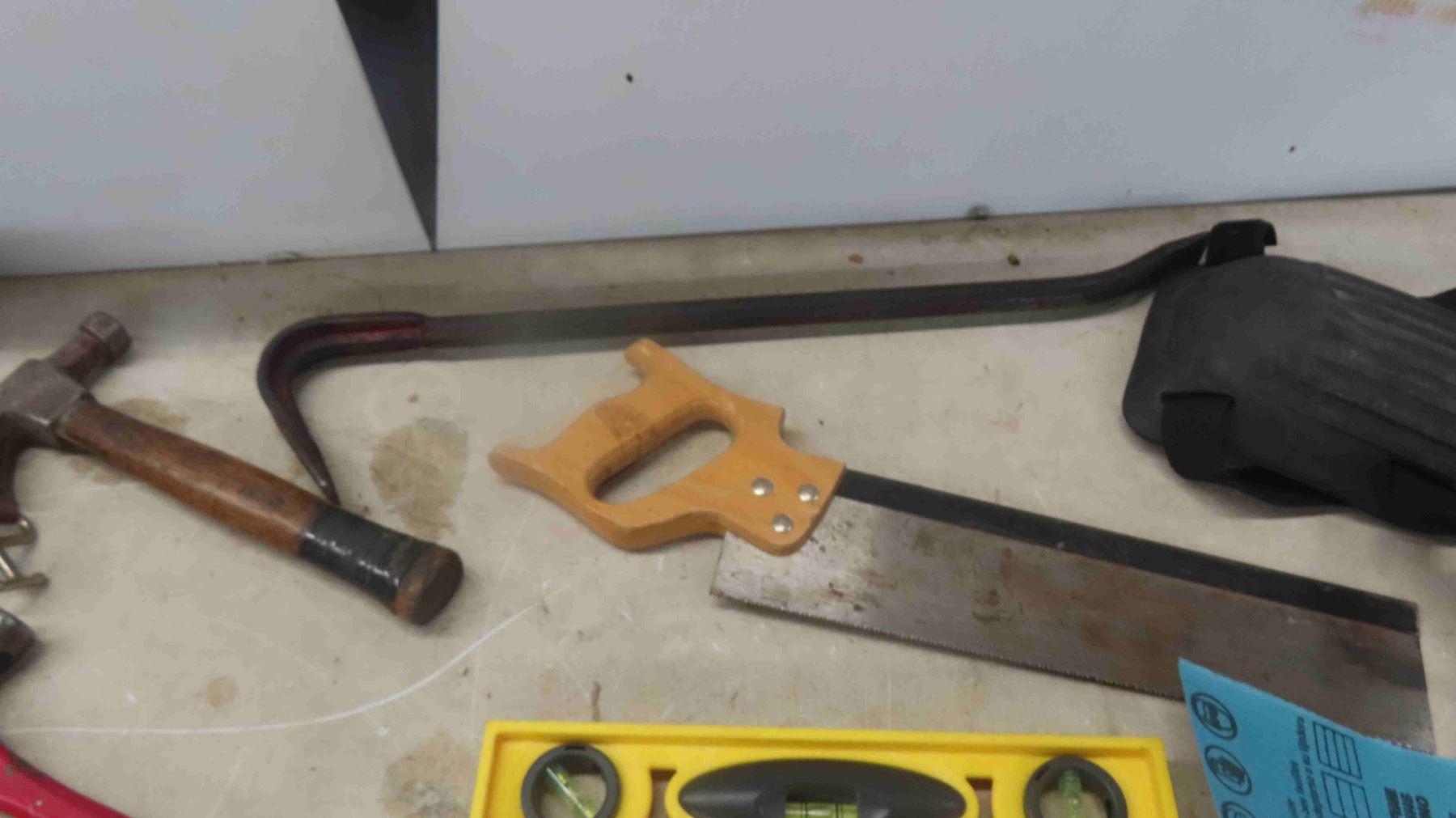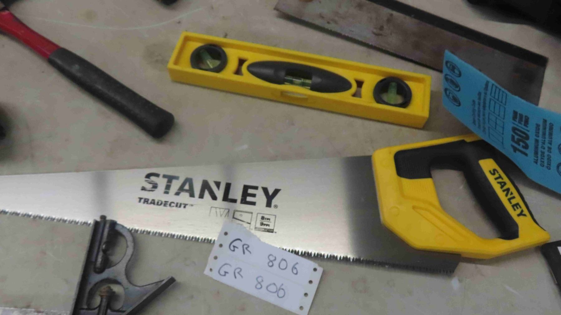 Various Carpentry Tools : Saws, Levels, Tool Belt, Hammer, Nail Puller, Squares & More