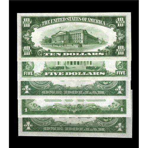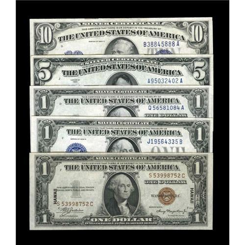 <B>Various Choice Crisp Uncirculated or Better Silver Certificates including</B></I> $1 1928B; $1 1935A; $5 1934; $10 1934C; and $1 Hawaii. Each note is crackling fresh.