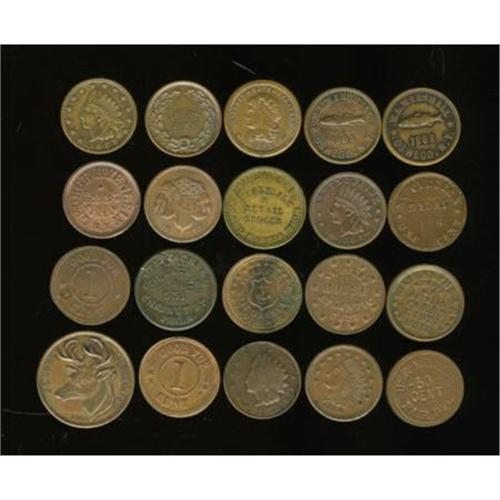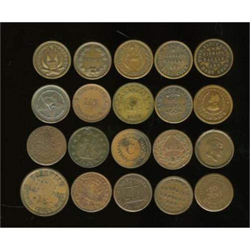 <B>Various Civil War Tokens.</B></I> The lot contains 16 Civil War merchant tokens and four Civil War patriotic tokens. Grades range from VF Damaged to Choice Mint State, so inspection is suggested.<BR><BR><b>Shipping:</b> Coins & Currency (<a target="_blank" href="http://www.heritageauctions.com/common/shipping.php">view shipping information</a>)