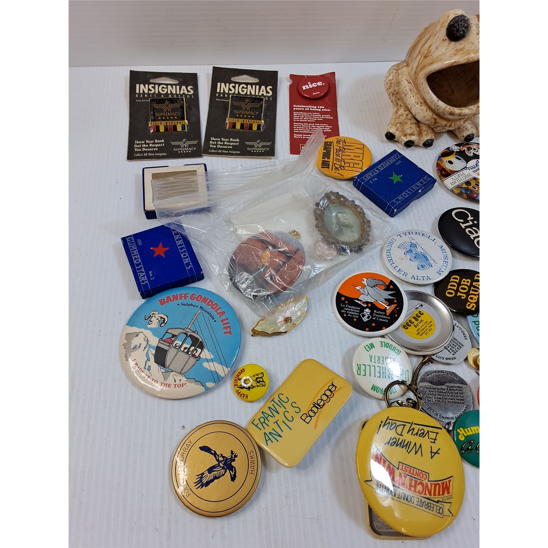 Various Collector Pins & Frog Kitchen Sponge Holder