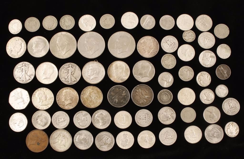 US Dollars, Half Dollars,Columbian Half Dollars, early Quarters and various other coins.
