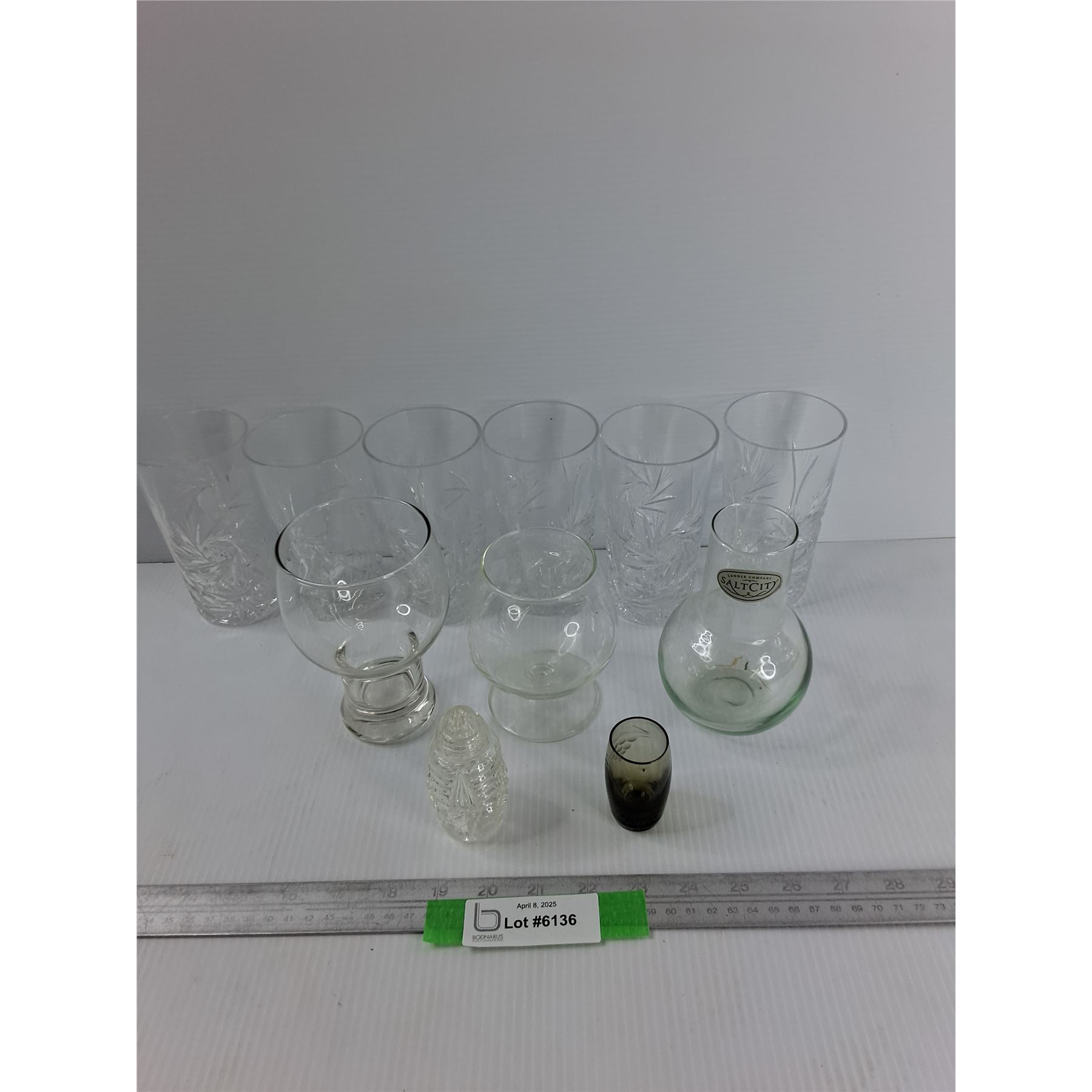 Various Crystal/ Glass Drinking Glasses, Tallest Is 5.5" Tall