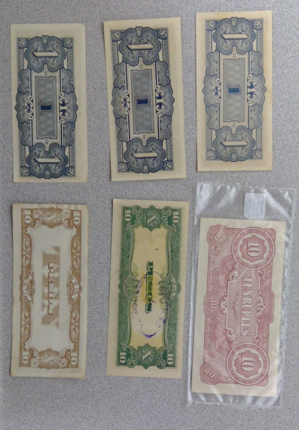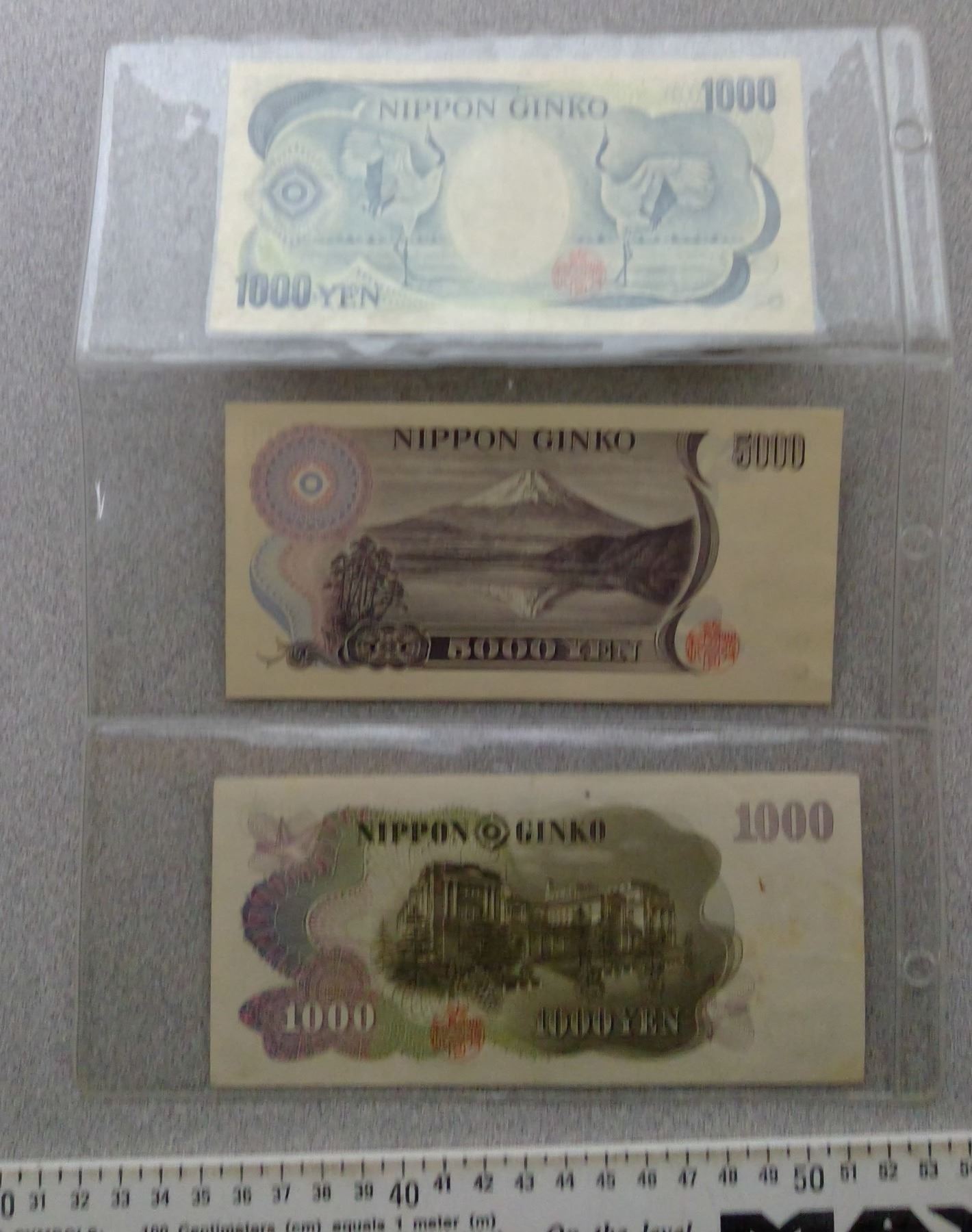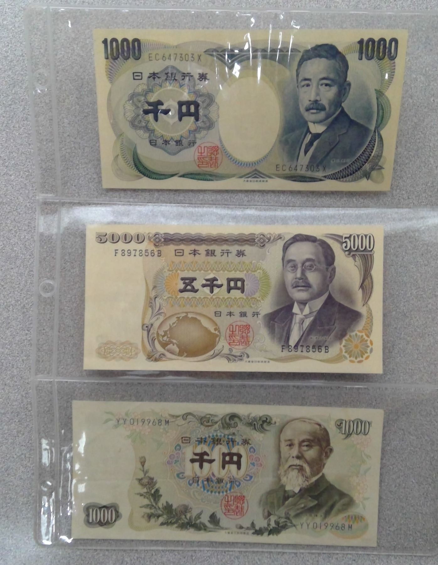 Various Denomination Japanese Paper currrency a few in plastic sleeves