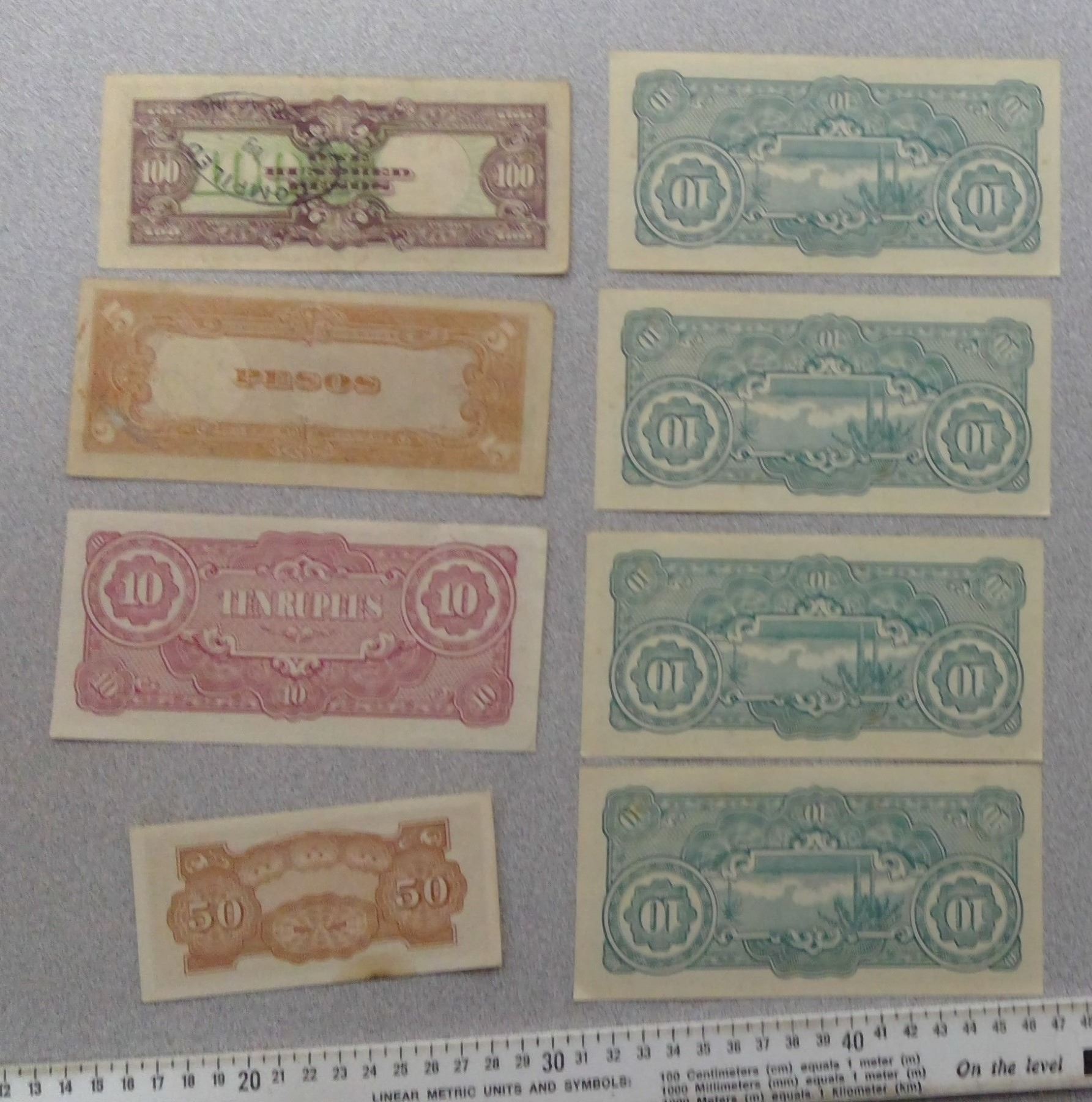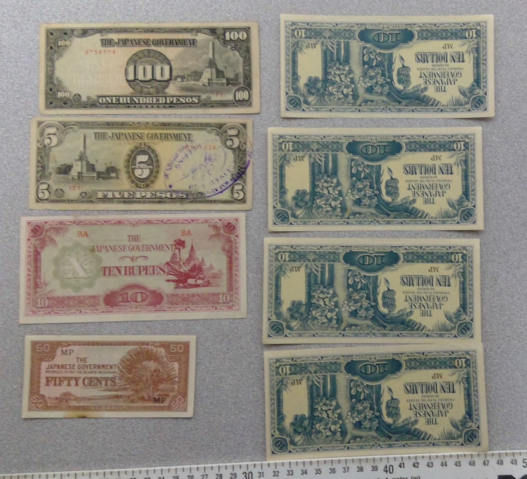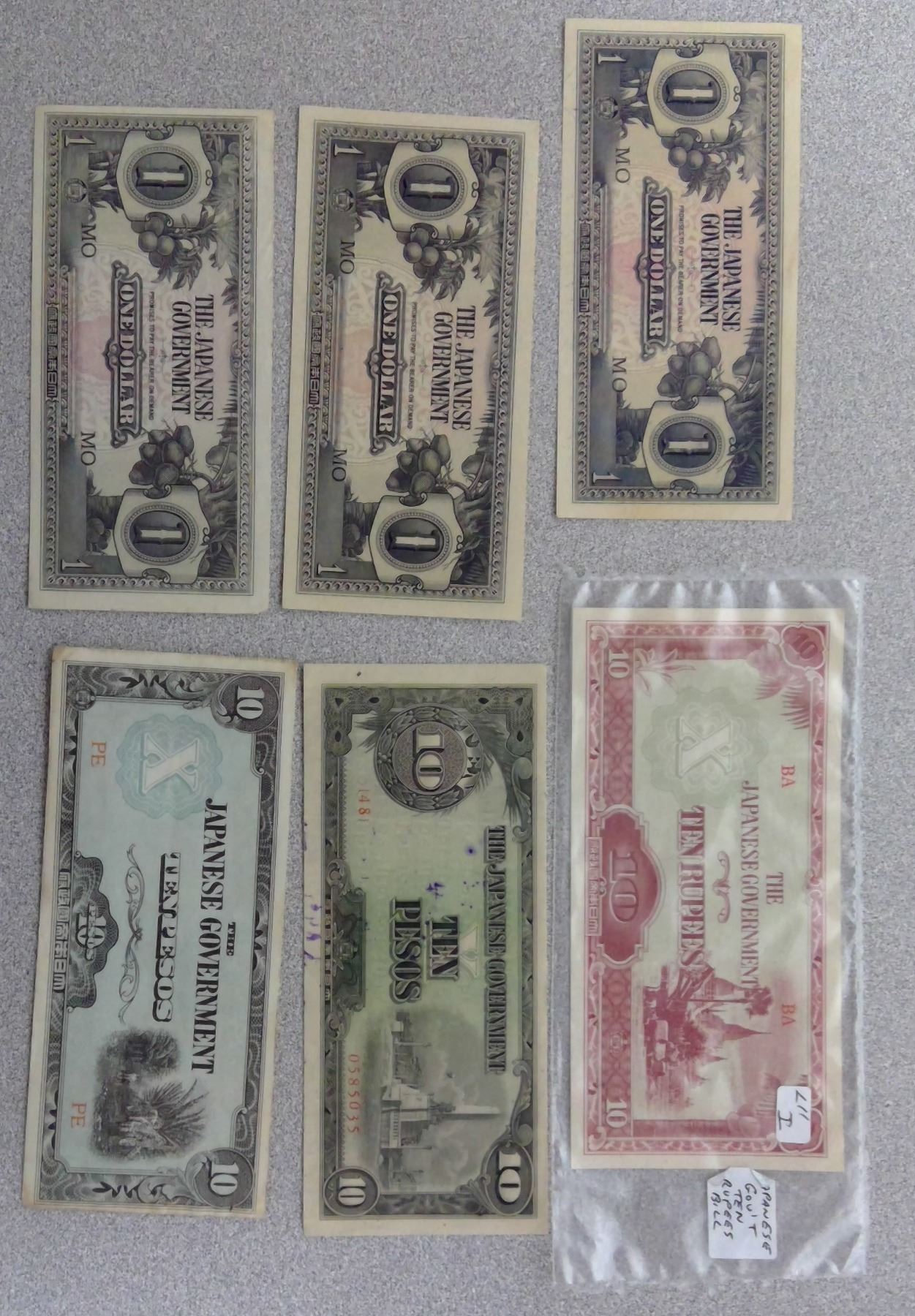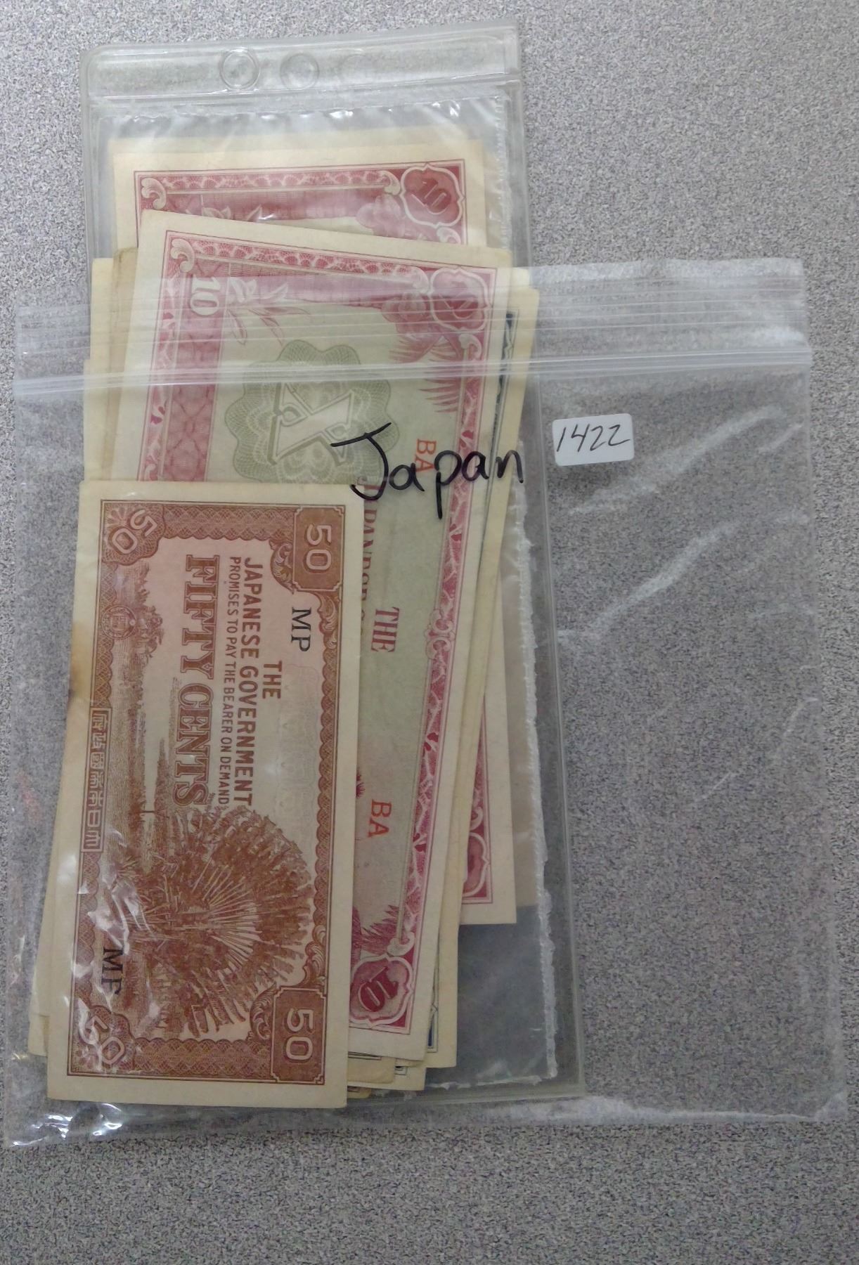 Various Denomination Japanese Paper currrency a few in plastic sleeves