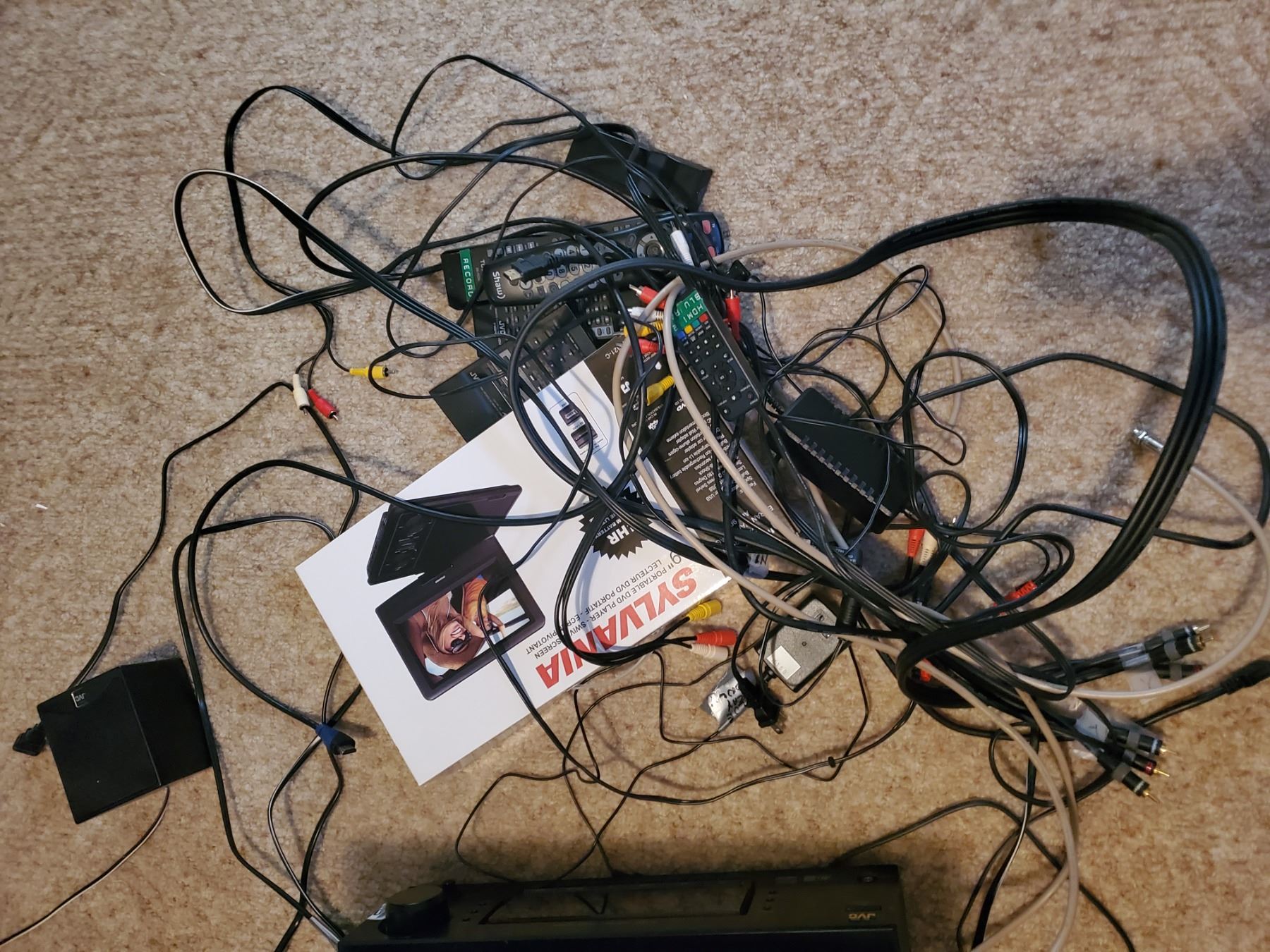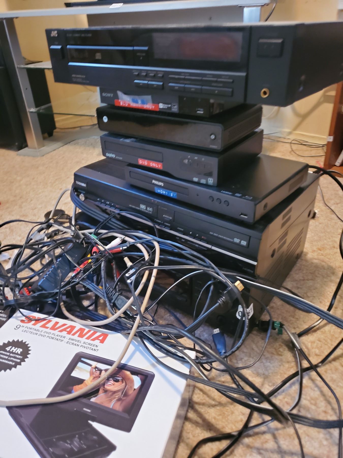 Various Electronics, Speakers, RCA Cables, & Remote Controls