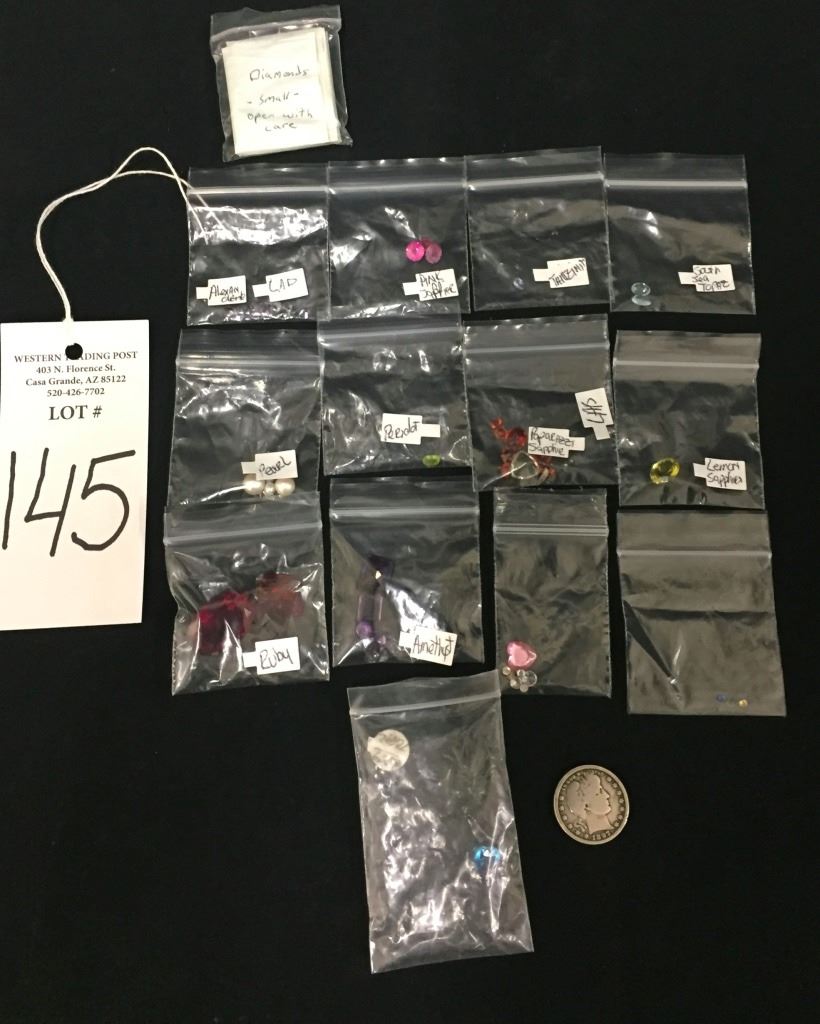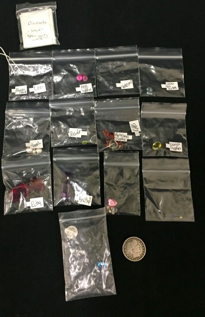Maker: Various. Approx. Age: Varies. Size: Varies. Condition: Good, they were pulled from older gold jewelry pieces. Additional Info: There are diamonds, sapphires, topaz, pearls, amethyst, peridot and numerous other gemstones. Some may be synthetic, many appear to be real, we are not 100% sure, but they were pulled from gold settings that were scrapped. Please look closely at the pictures - they are an important part of our description. Shipping: There will be a $5 handling / packaging fee for shipping this lot. The actual cost of postage will be added on top of that.
