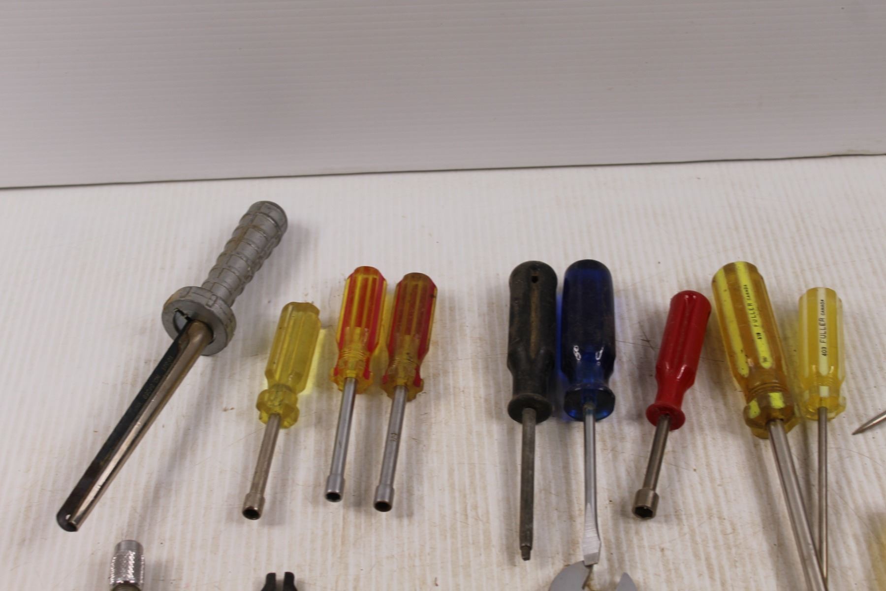 Various Hand Tools - Screwdrivers, Nut Drivers, Adjustable Wrenches, Multi-bit Screwdrivers, Blue Po