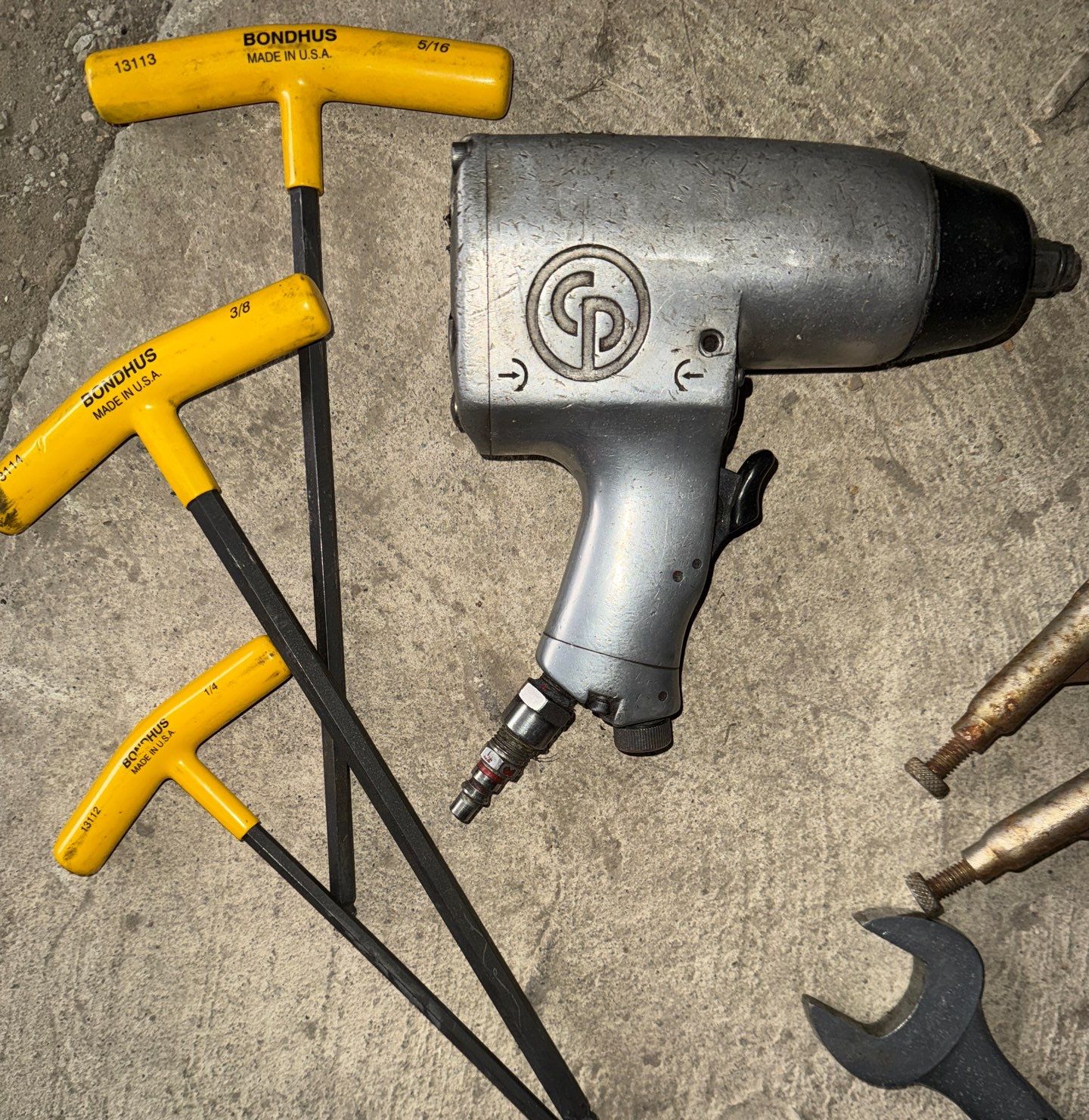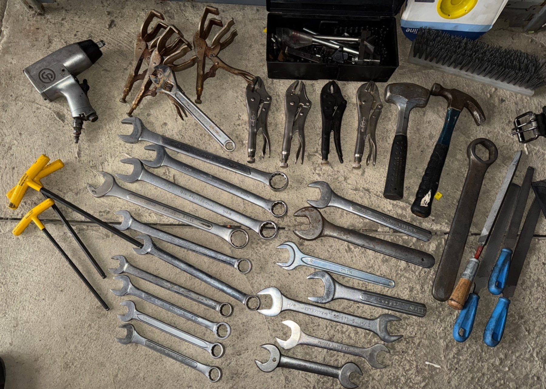 Various Hand Tools- T-Handle Hex Wrenches, Impact Wrench, Hammers, Pliers, Files