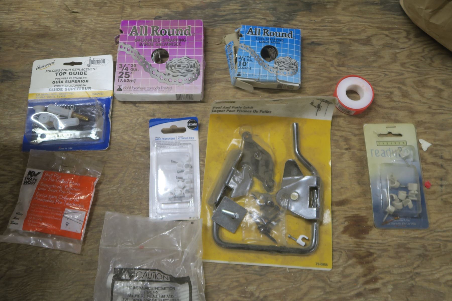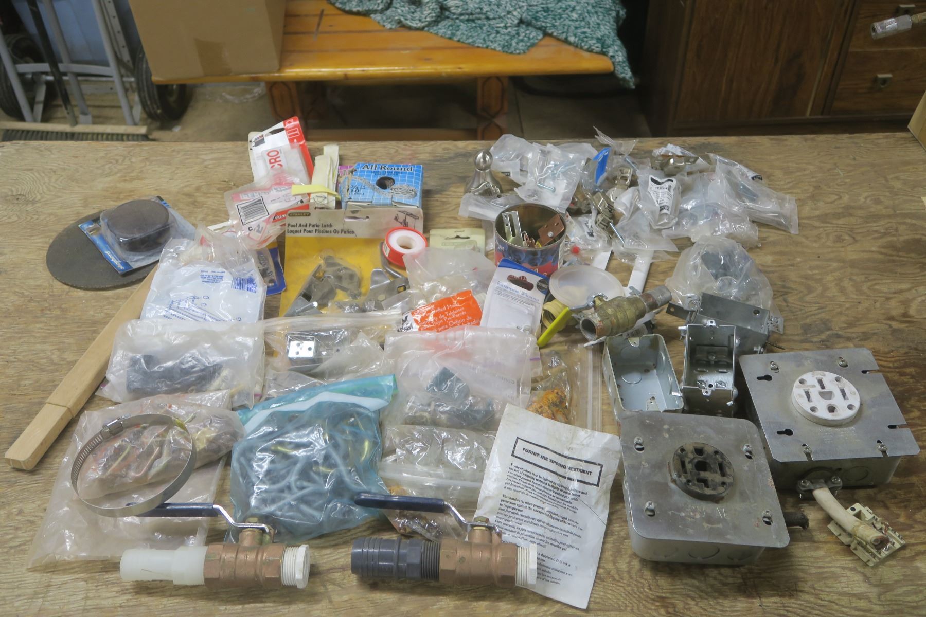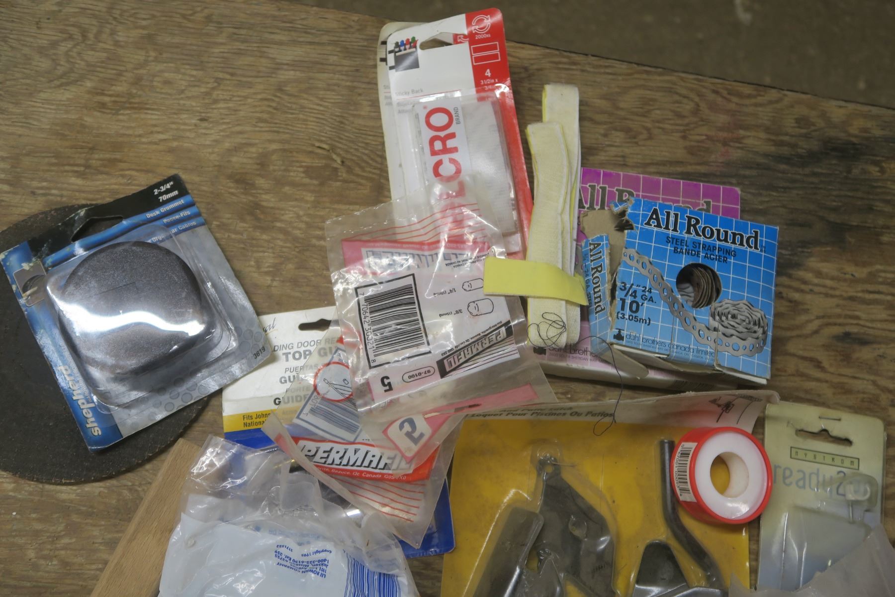Various Hardware Items - A lot New in Package: Steel Strapping / Clamps/ Hooks / Cuboard Handles / Sockets / Velcro / Valves / Ect