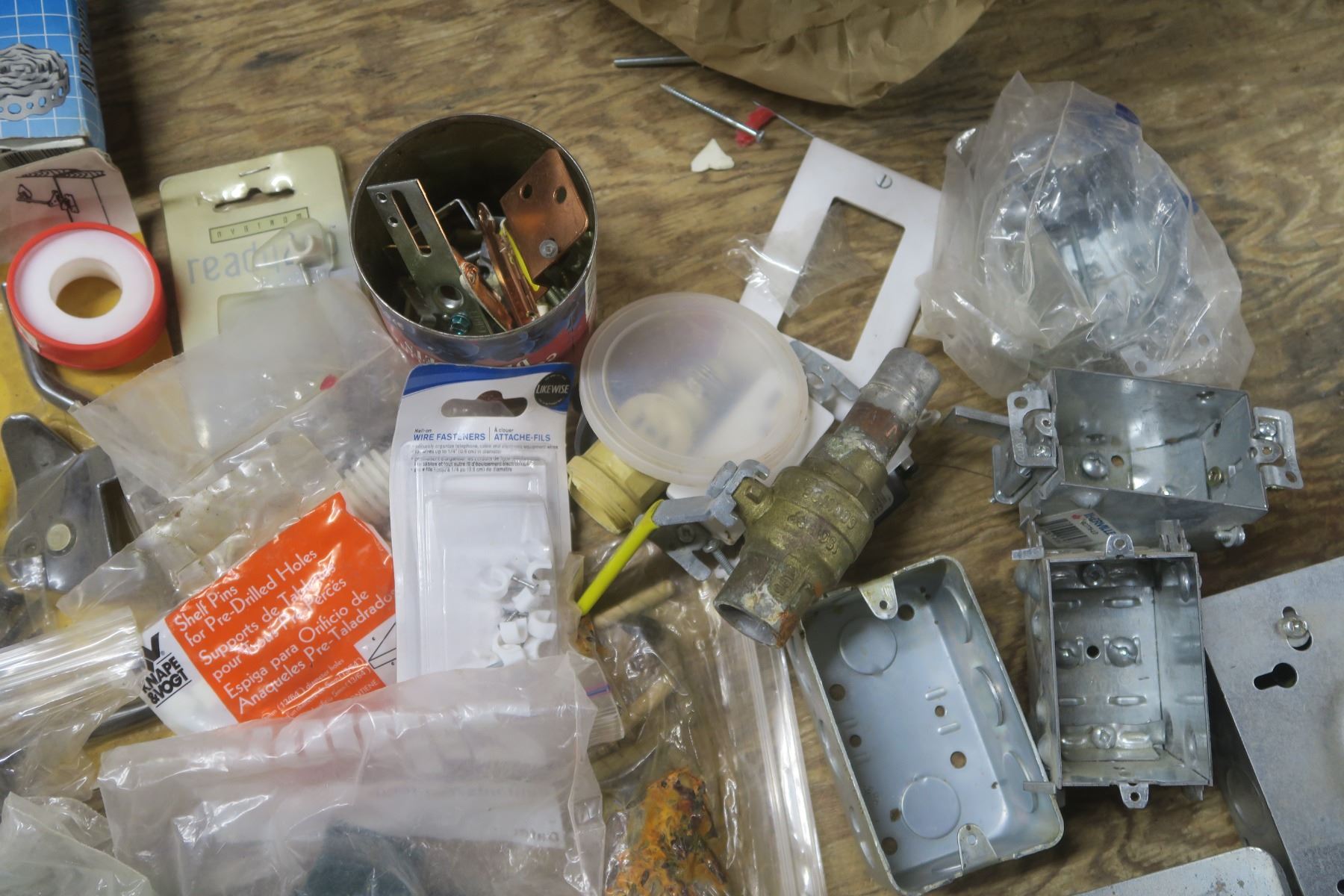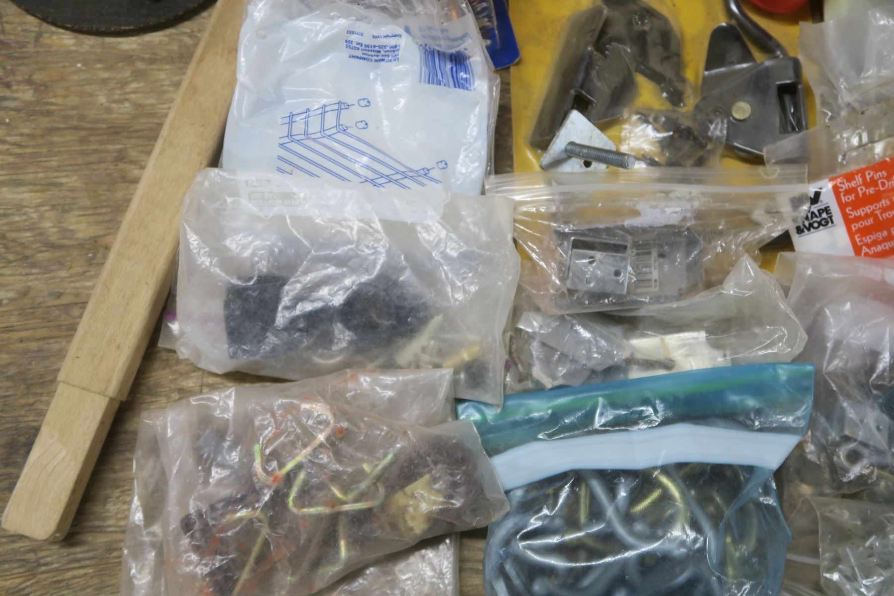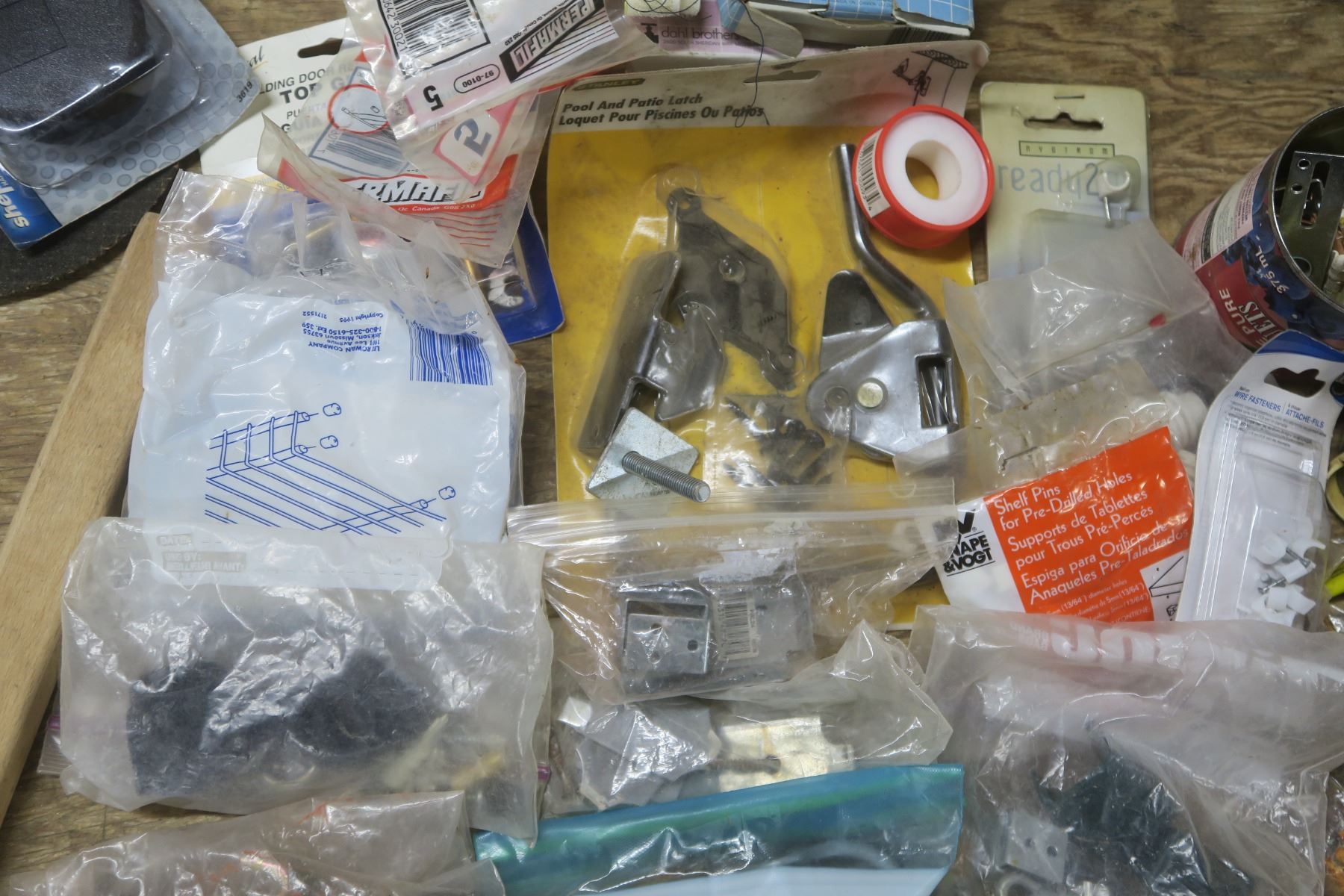 Various Hardware Items - A lot New in Package: Steel Strapping / Clamps/ Hooks / Cuboard Handles / Sockets / Velcro / Valves / Ect