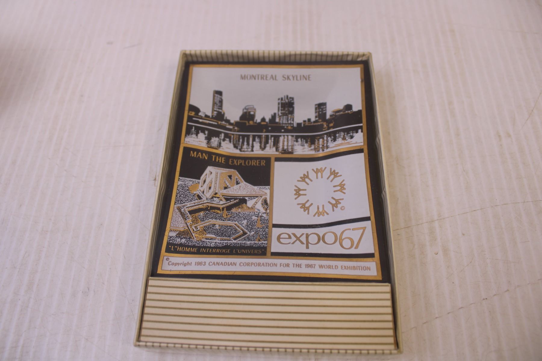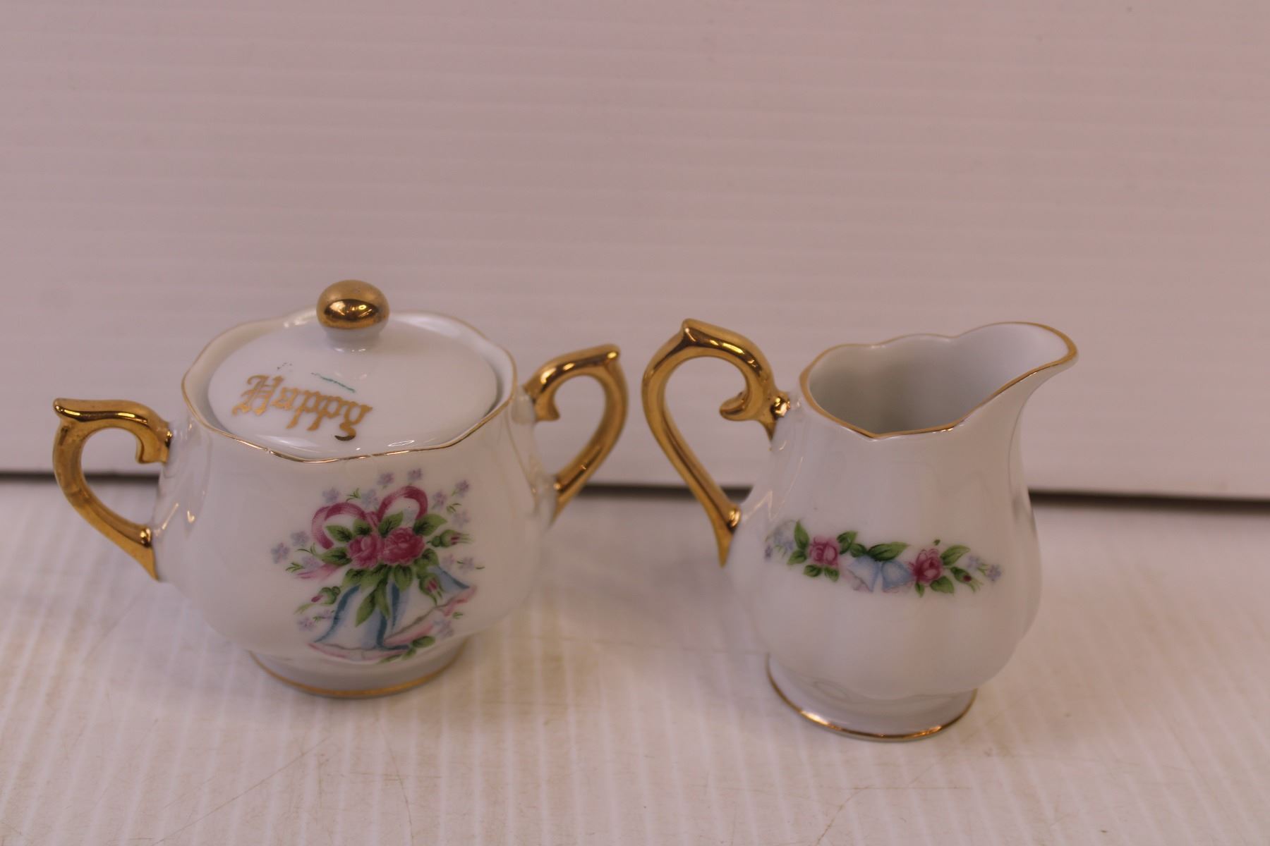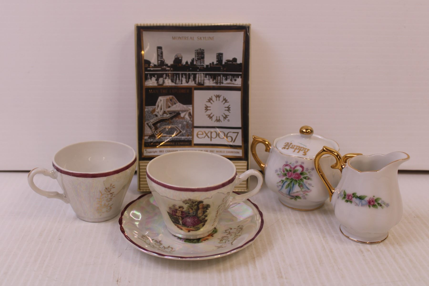 Various Items-Montreal skyline pleated, tea cup with saucer, cream and sugar set