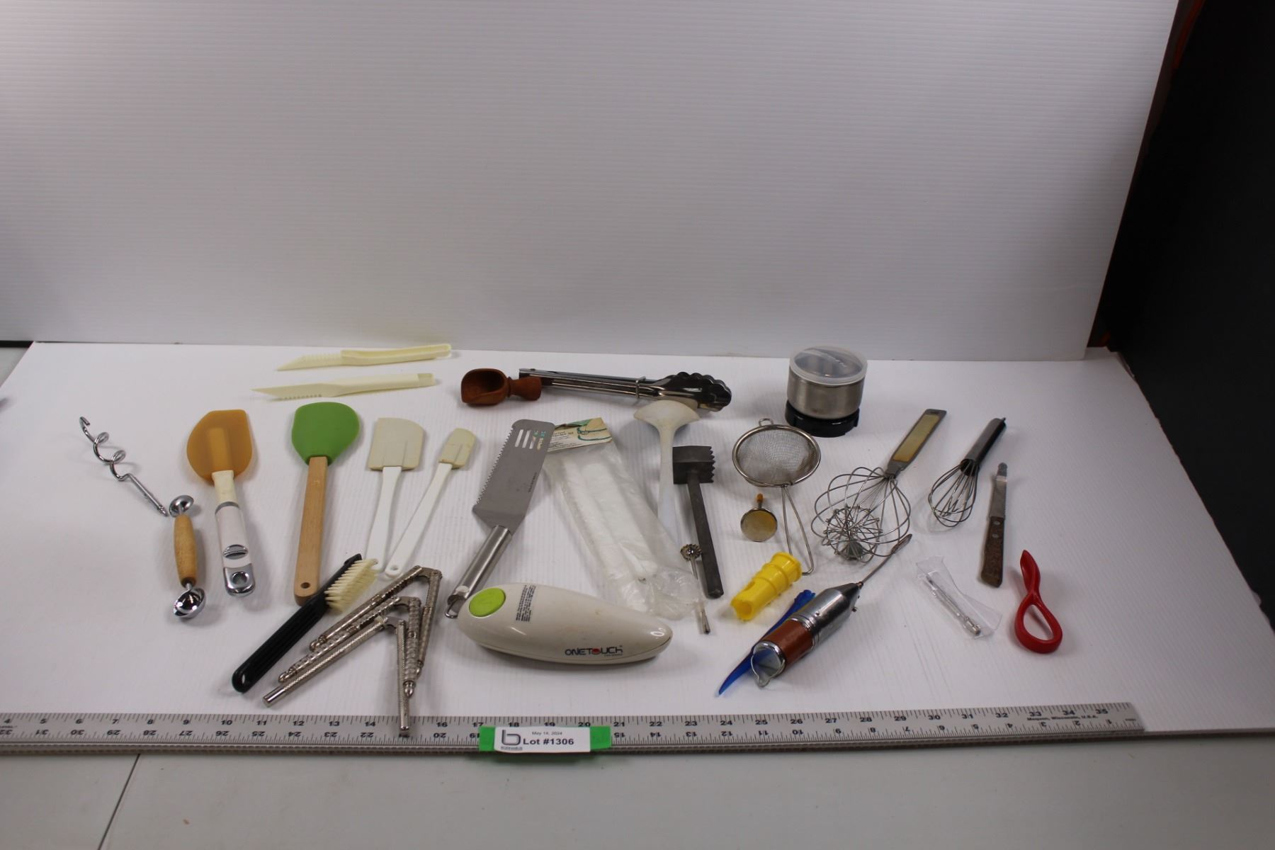 Various Kitchen Utensils - Spatulas, Peelers, Nut Crackers, Meat Tenderizer, Tongs, Whisks, Spoon, K
