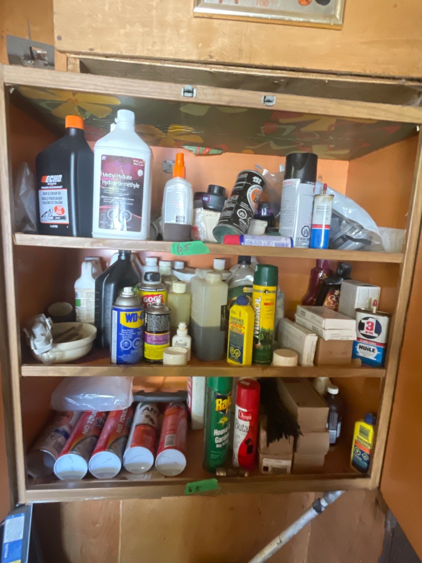 Various Oils, Chemicals and Insect Repellants.