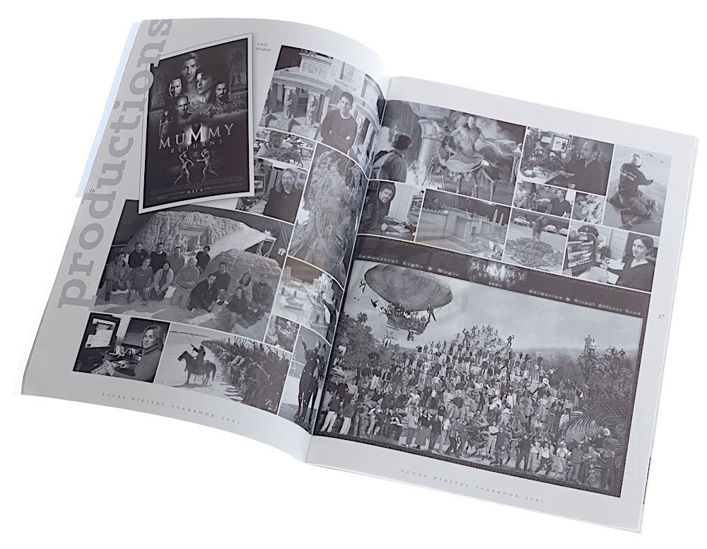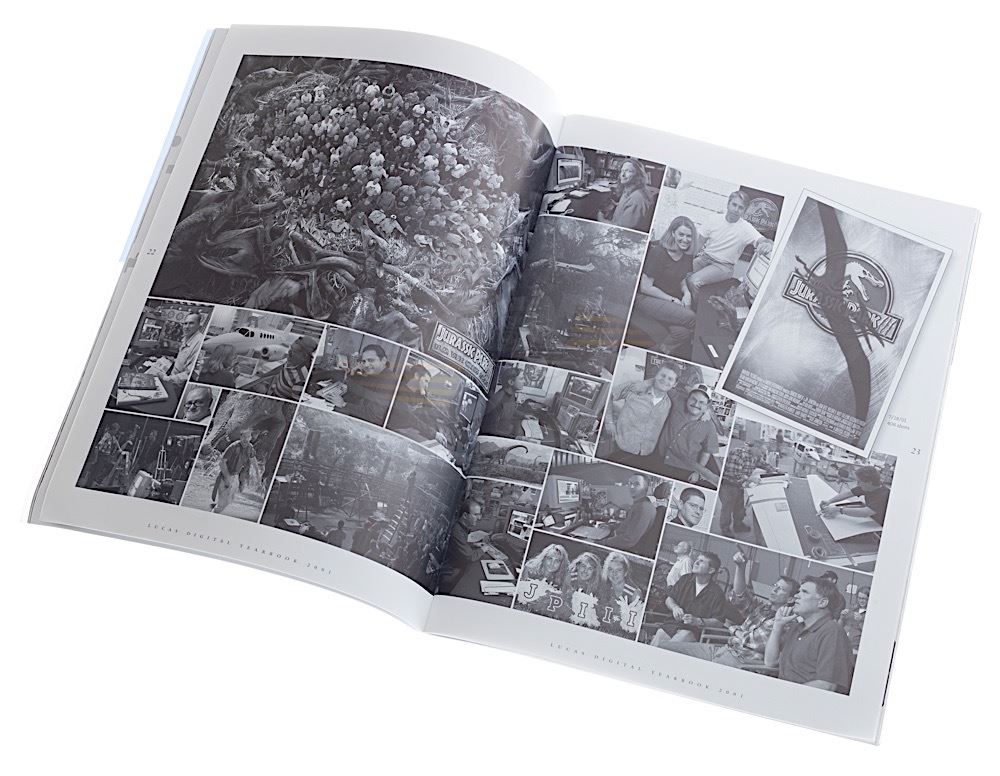 A very rare Lucas Digital company yearbook. Yearbooks like this were only issued to Lucas Digital staff and were not sold to the public. This yearbook is dated 2001 and features many of the Lucas Digital events and milestones of 2001 including Jurassic Park III. Measures 8.5" x 11".