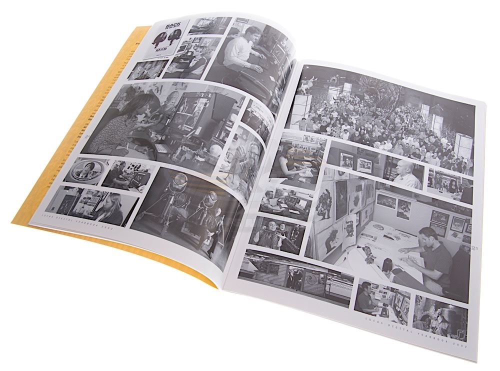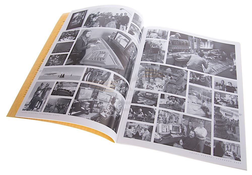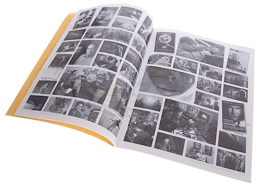 A very rare Lucas Digital company yearbook. Yearbooks like this were only issued to Lucas Digital staff and were not sold to the public. This yearbook is dated 2002 and features many of the Lucas Digital events and milestones of 2002 including Star Wars Bounty Hunter. Measures 8.5" x 11".