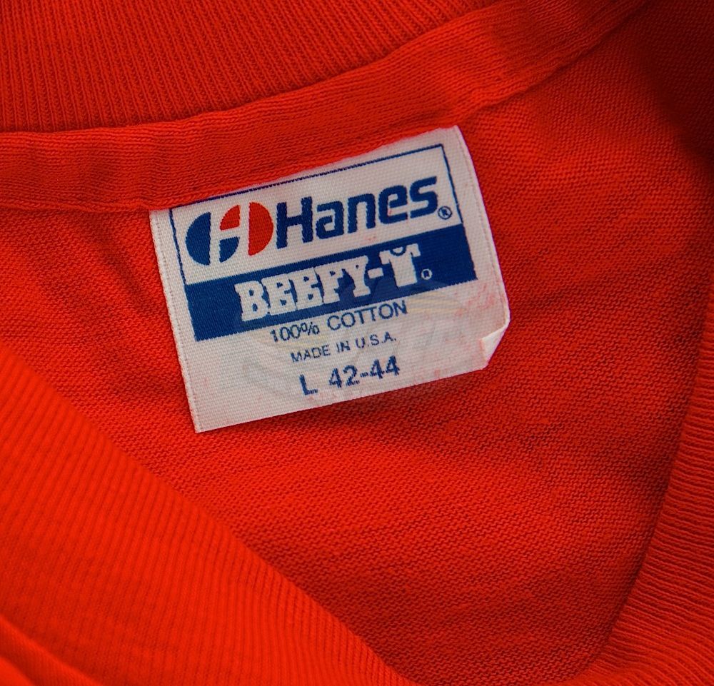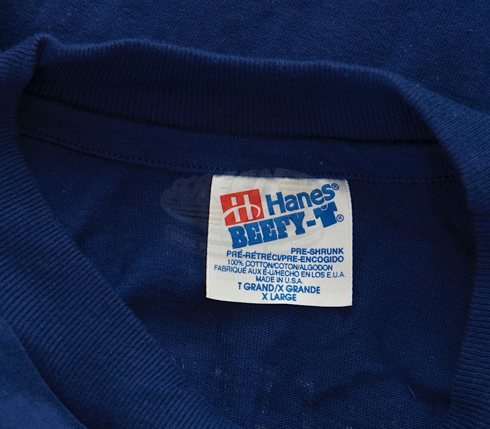 The size large t-shirt features the ILM logo on the chest and a large clapper board transfer on back that contains the logos of Back to the Future, The Goonies, Cocoon, Explorers, Ewoks 2, Enemy Mine and Young Sherlock Holmes.