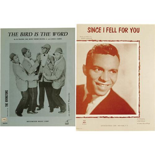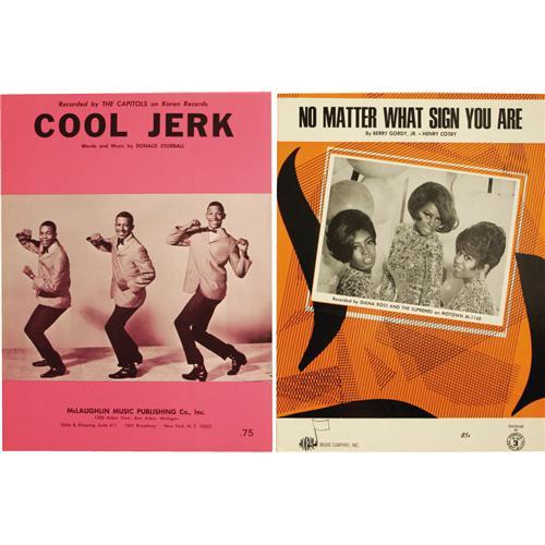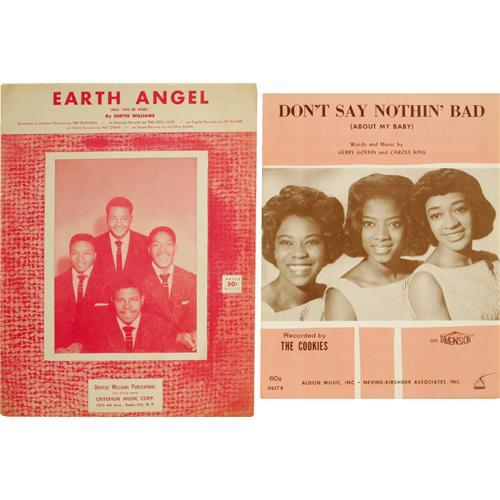 <B>Various R&B Artists Sheet Music Group of 10 (1954-69).</B></I> Far-reaching, wide-ranging group includes Chuck Berry's "Sweet Little Sixteen" (1958) in EX 7; the Capitols' "Cool Jerk" (1966) in MT 9; the Chiffons' "One Fine Day" (1963) in MT 9; the Cookies' "Don't Say Nothin' Bad About My Baby (1963) in MT 9; the Penguins' "Earth Angel" (1954) in VG-EX 6; the Rivingtons' "The Bird Is The Word" (1963) in EX 7; the Supremes' "No Matter What Sign You Are" (1969) in MT 9; Lenny Welch's "Since I Fell For You" (1963) in NM 8; and Jackie Wilson's "Lonely Teardrops" (1958) and "Alone At Last", both in NM 8. <I>From the GRT Collection</B></I>.<BR><BR><b>Shipping:</b> Books & Catalogs (<a target="_blank" href="http://www.heritageauctions.com/common/shipping.php">view shipping information</a>)
