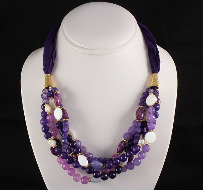 Various Semi Precious Gemstone Handmade Crafts Necklace **|**|** 501.00CARAT Handmade Necklace w/ Various Semi Precious Stones; 100% Purple Silk layered in buttery 24k over brass VERY UNIQUE ; MSRP: $0