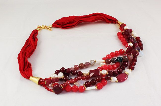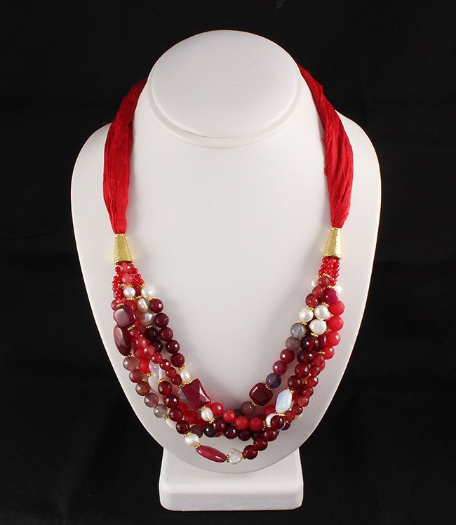 Various Semi Precious Gemstone Handmade Crafts Necklace **|**|** 505.50CARAT Handmade Necklace w/ Various Semi Precious Stones; 100% Red Silk layered in buttery 24k over brass VERY UNIQUE ; MSRP: $0