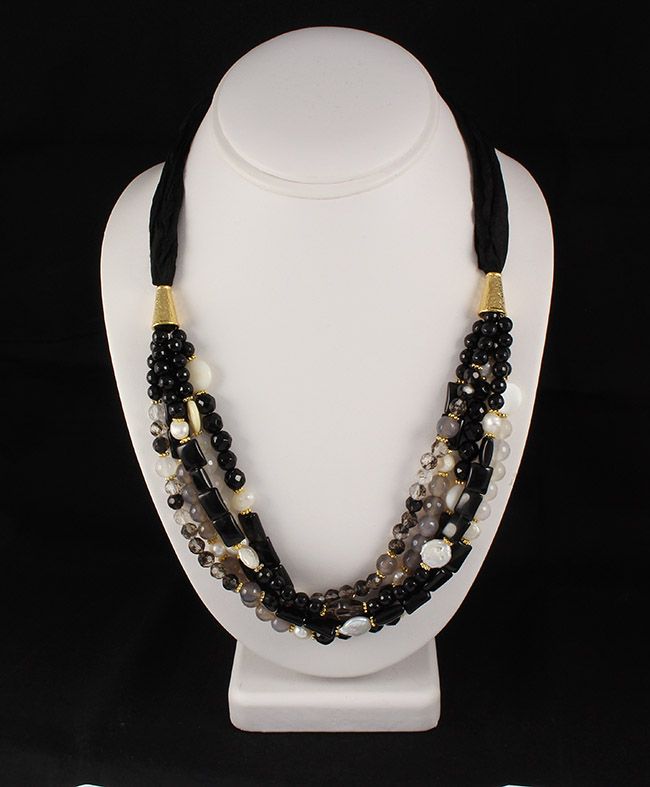 Various Semi Precious Gemstone Handmade Crafts Necklace **|**|** 505.50CARAT Handmade Necklace w/ Various Semi Precious Stones; 100% Black Silk layered in buttery 24k over brass VERY UNIQUE ; MSRP: $0