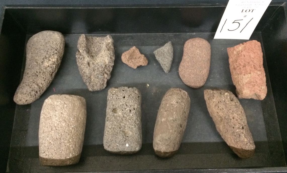 These various stone relics (10 pieces) came out of the old Frontier Relics Museum (Orville Mickens estate). Mr. Mickens found most of the items in his museum while tromping around historical areas in Arizona and New Mexico. Please look at pics to see what all is there. Shipping: There will be a $7 handling / packaging fee for shipping this lot. The actual cost of postage will be added on top of that.