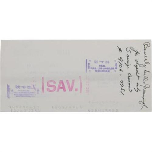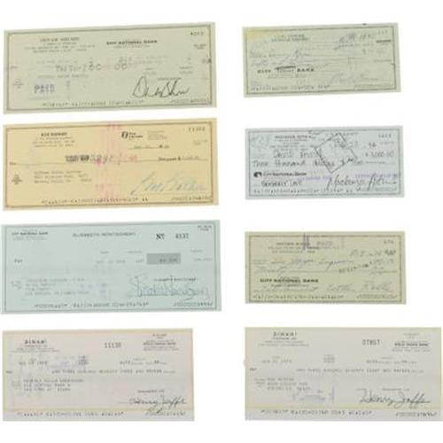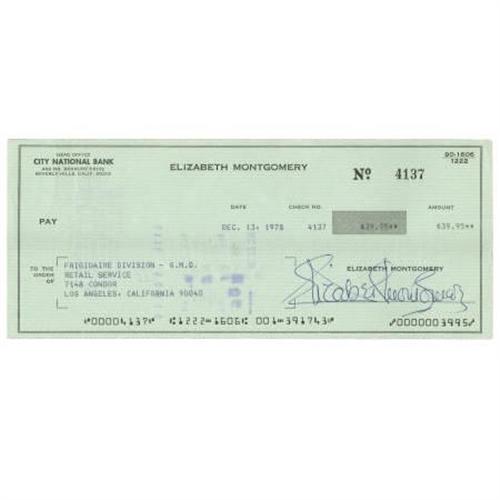 <B>Various TV Personalities Signed Checks.</B></I> This interesting assortment of star-signed checks includes Carl Reiner's $50 check to his father, Irving Reiner, dated June 10, 1963, with "Happy Father's Day" hand-written in the memo line. Also included are checks signed by Dinah Shore (from July 5, 1974, to the National Jewish Hospital), Elizabeth Montgomery (dated December 13, 1978), Bob Barker (dated November 27, 1984), Esther Rolle (dated August 9, 1976), and Mackenzie Astin (to his brother, dated February 22, 1994). Adding to the mix are two endorsed checks signed en verso by Rob Reiner and Beverly Sills -- both "scale" checks for $378.94 for their appearances on the <I>Dinah Shore Show</B></I> in 1979. All are in Very Fine to Excellent condition with the standard bank cancellation marks.<BR><BR><b>Shipping:</b> Flat Material, Small (<a target="_blank" href="http://www.heritageauctions.com/common/shipping.php">view shipping information</a>)