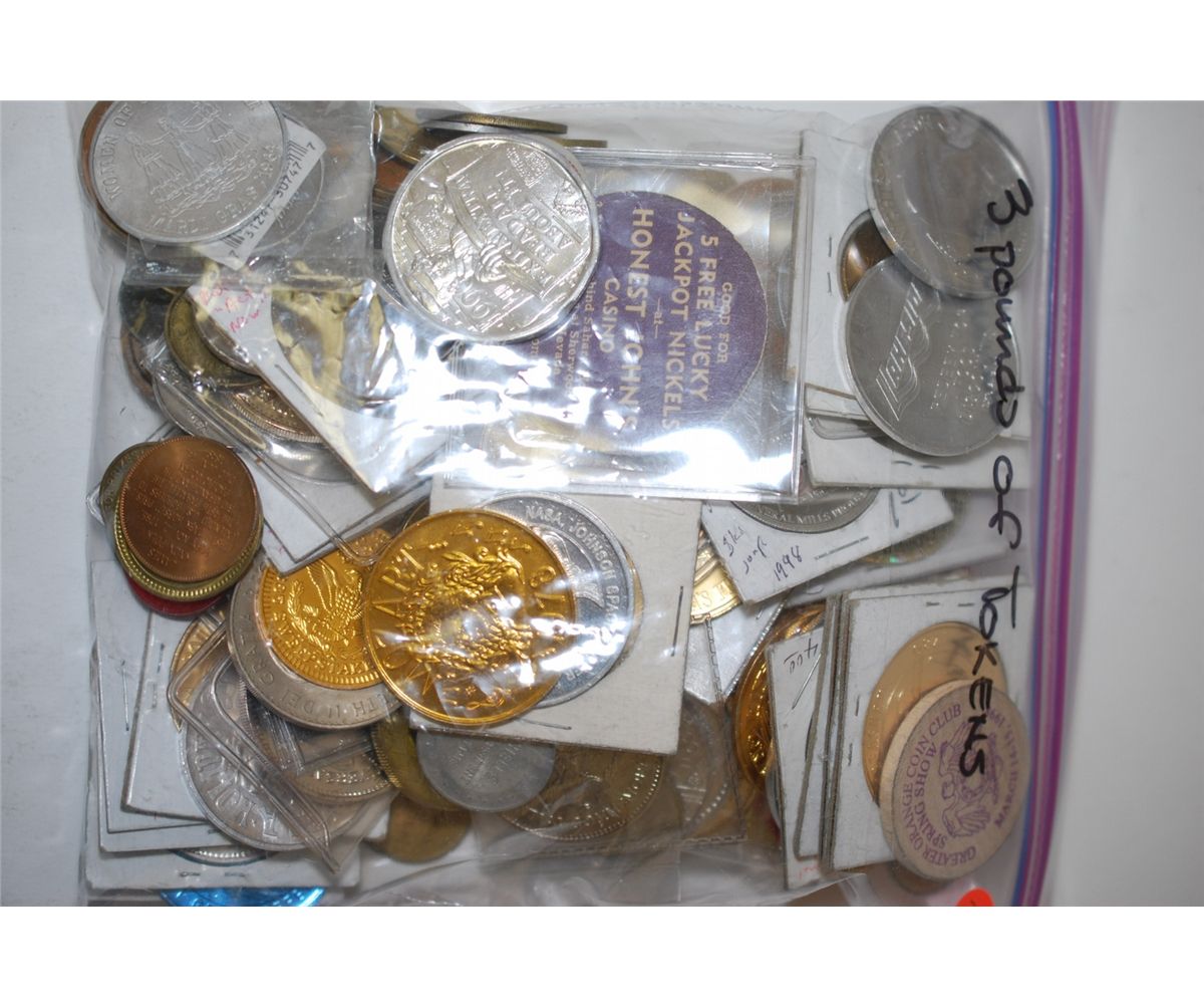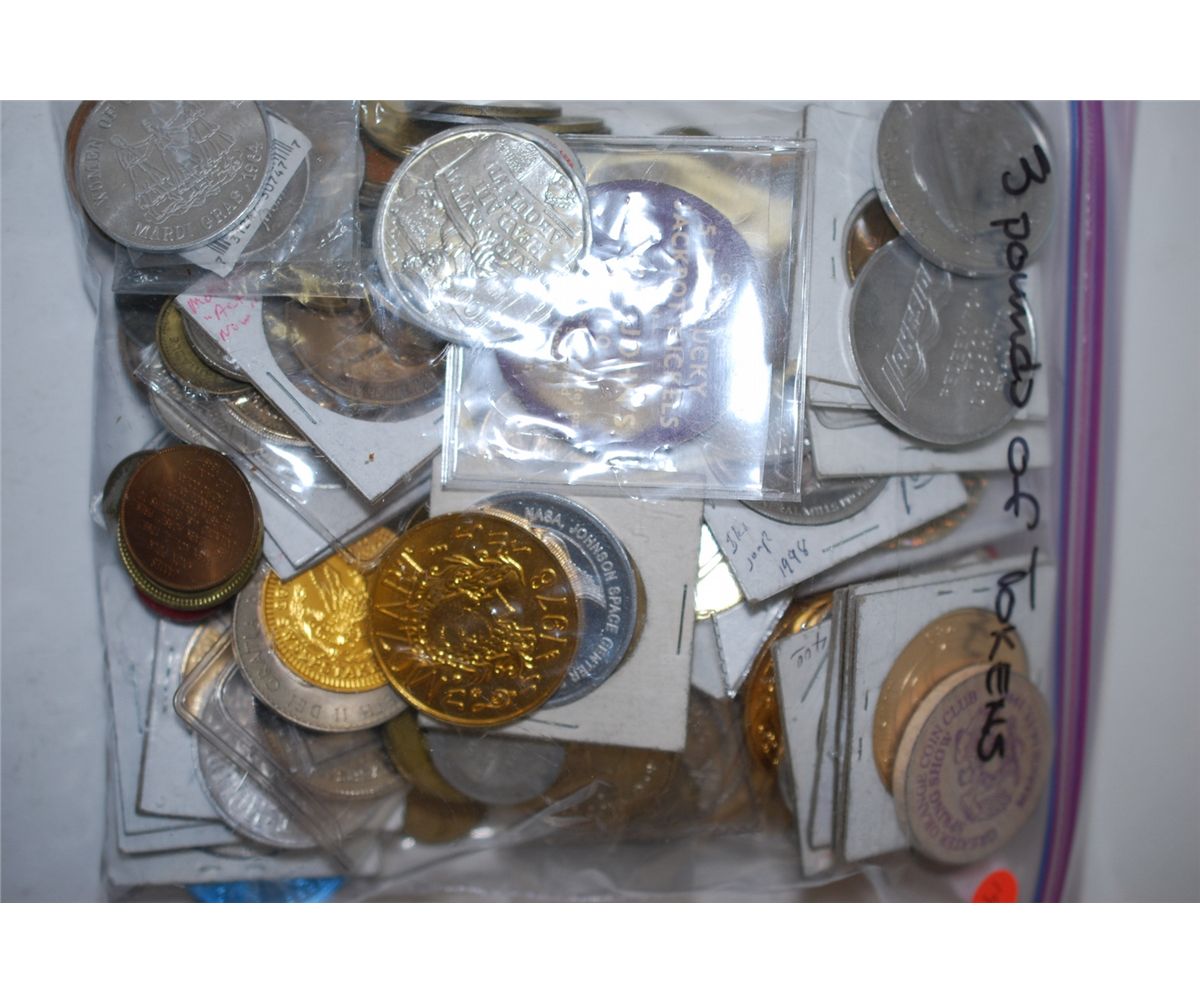 Various Tokens, Medals, Wooden Nickels, Etc.; Three (3) Pounds By Weight; EST. $20-40