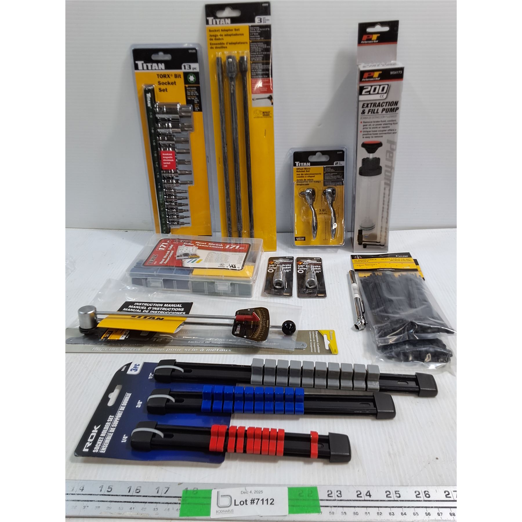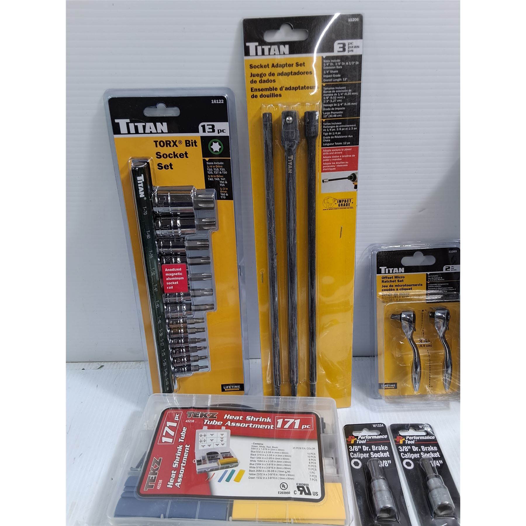 Various Tools- Titan Socket Set, Socket Adapter Set, 1/4" Dr Torque Wrench - NIB