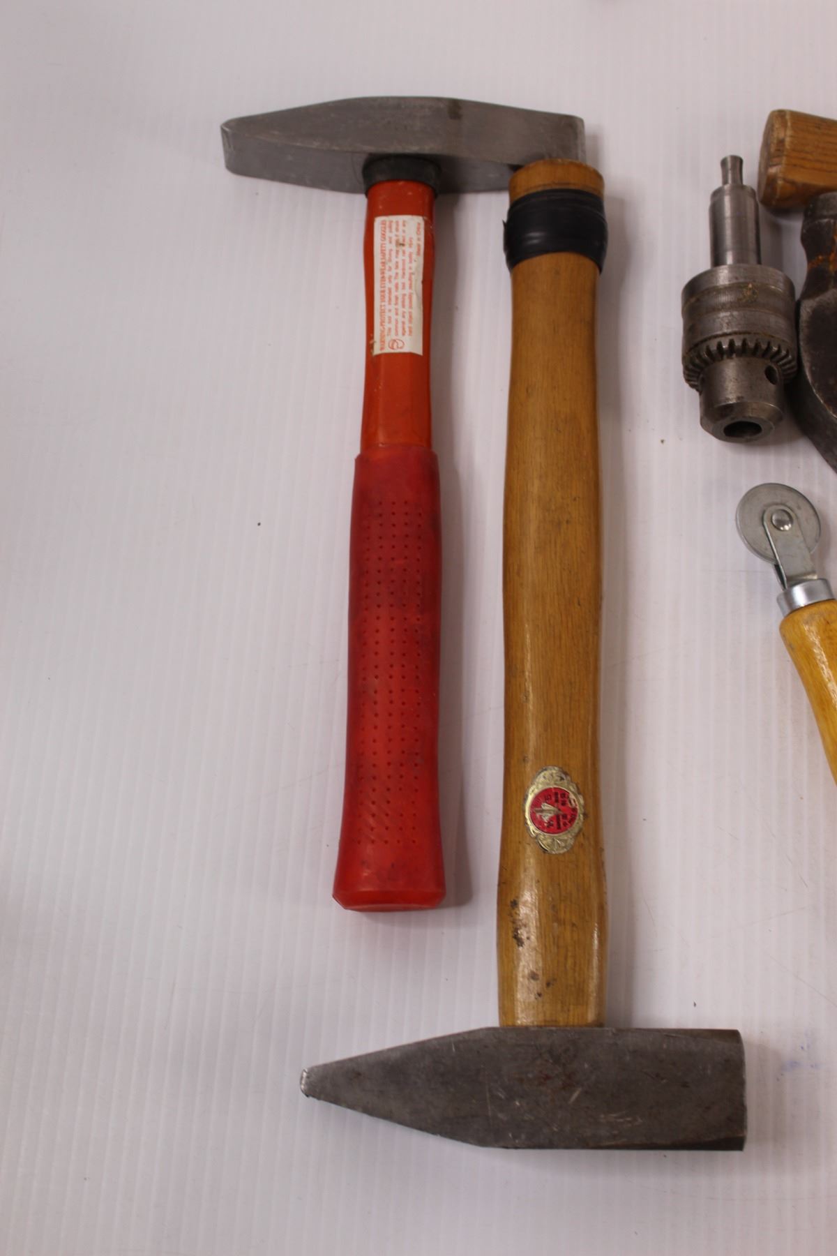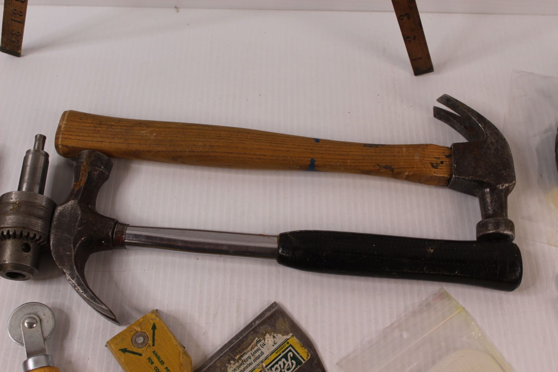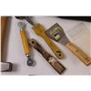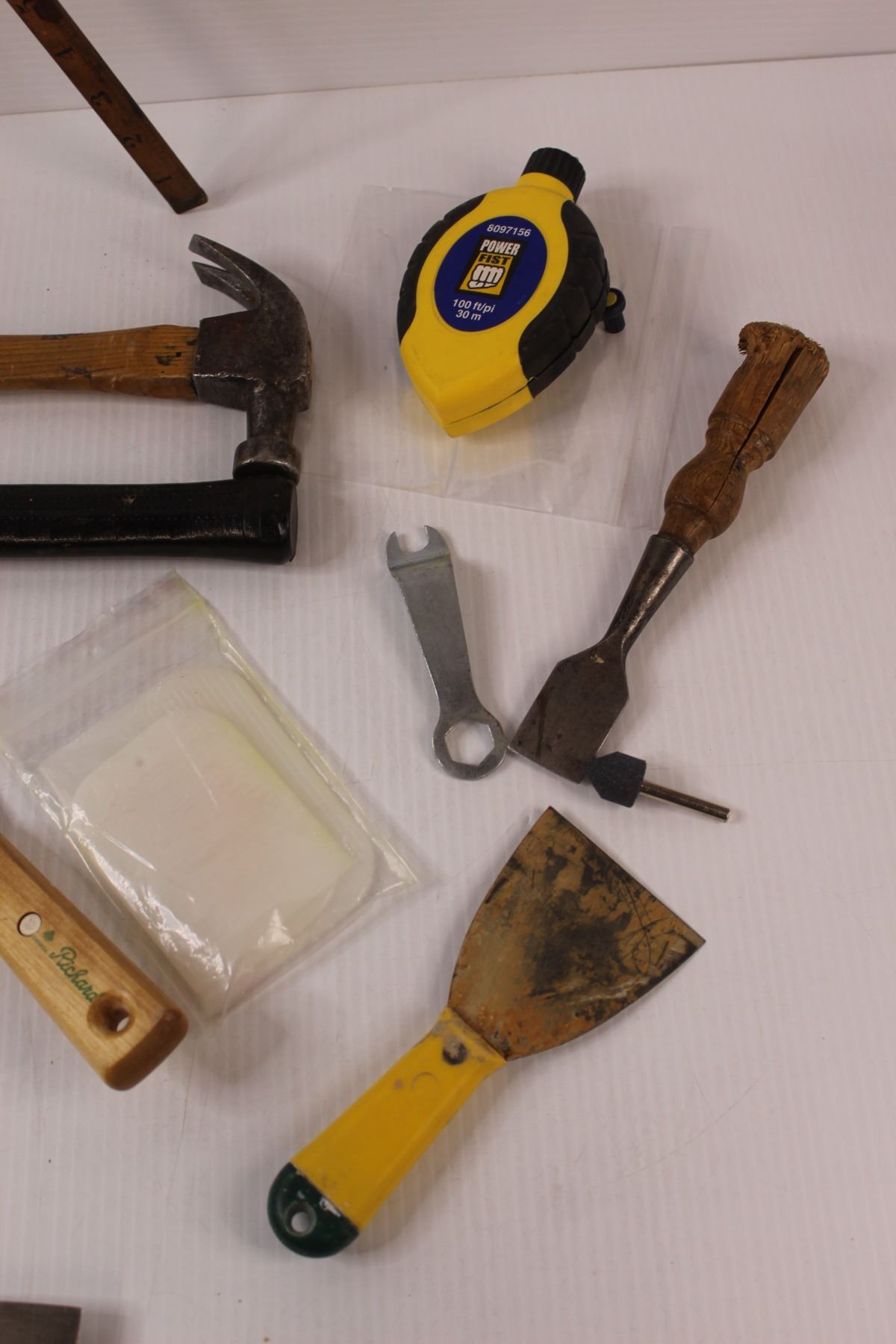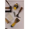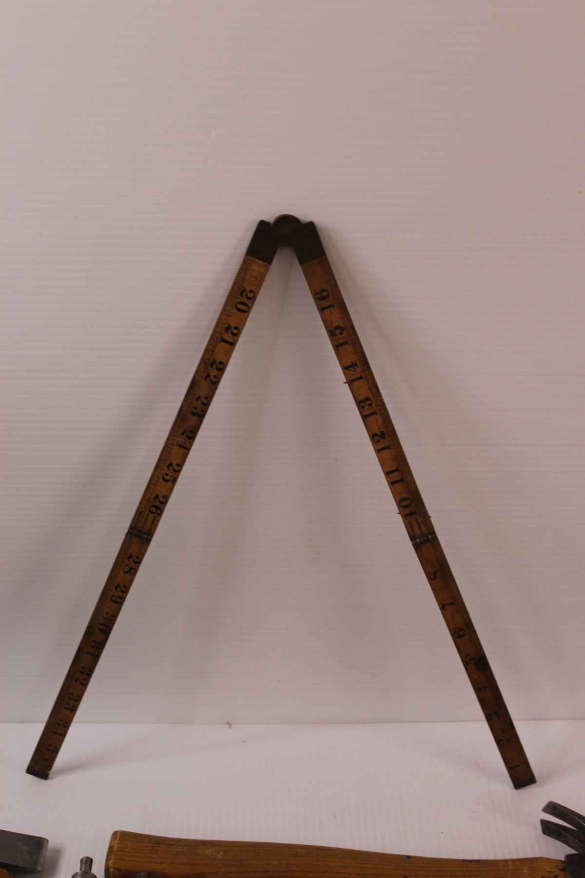 Various Tools of Varying Condition - Hammers, Scrapers, Chisel, Chalk Line, Vintage Folding Meter Stick etc.
