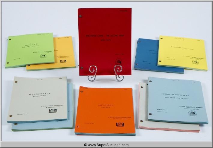 Various Twentieth Century-Fox Television Scrips ~ "Trauma center-Breakthrough" / Revised Final Draft / August 19, 1983 ~ "Masquerade-Diamonds" / #2213 / Revised Final Draft / August 23, 1983 ~ "Masquerade-Flashpoint" / #2410 / Final Draft / December 29, 1983 ~ 'The Paper Chase-Tempest In A Pothole" / First Draft / August 29, 1983 ~ 'The Paper Chase-The Second Year-Mrs. Hart" / First Draft / August 12, 1983 ~ "Emerald Point N.A.S-Lost And Found" / #17 / Final / January 5, 1984 ~ "Emerald Point N.A.S- #5 / Final Draft / August 26, 1983 ~ ""Emerald Point N.A.S-The Best Laid Plans" / #19 / Final Draft / January 23, 1984 ~ "Automan-Zippers" / #2414 / Final Draft / January 3, 1983 ~ " Automan-Murder, Take One" / #2412 / 2nd Revised Final / December 29, 1983 ~ "Automan-Renegarde Run" / #2214 / Second Revised Final Draft / December 16, 1983