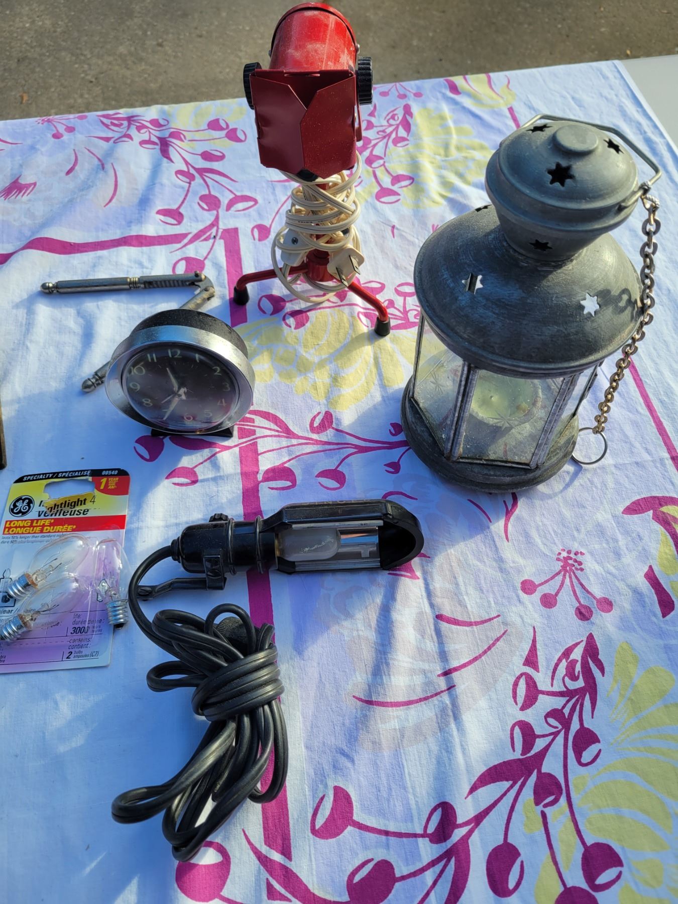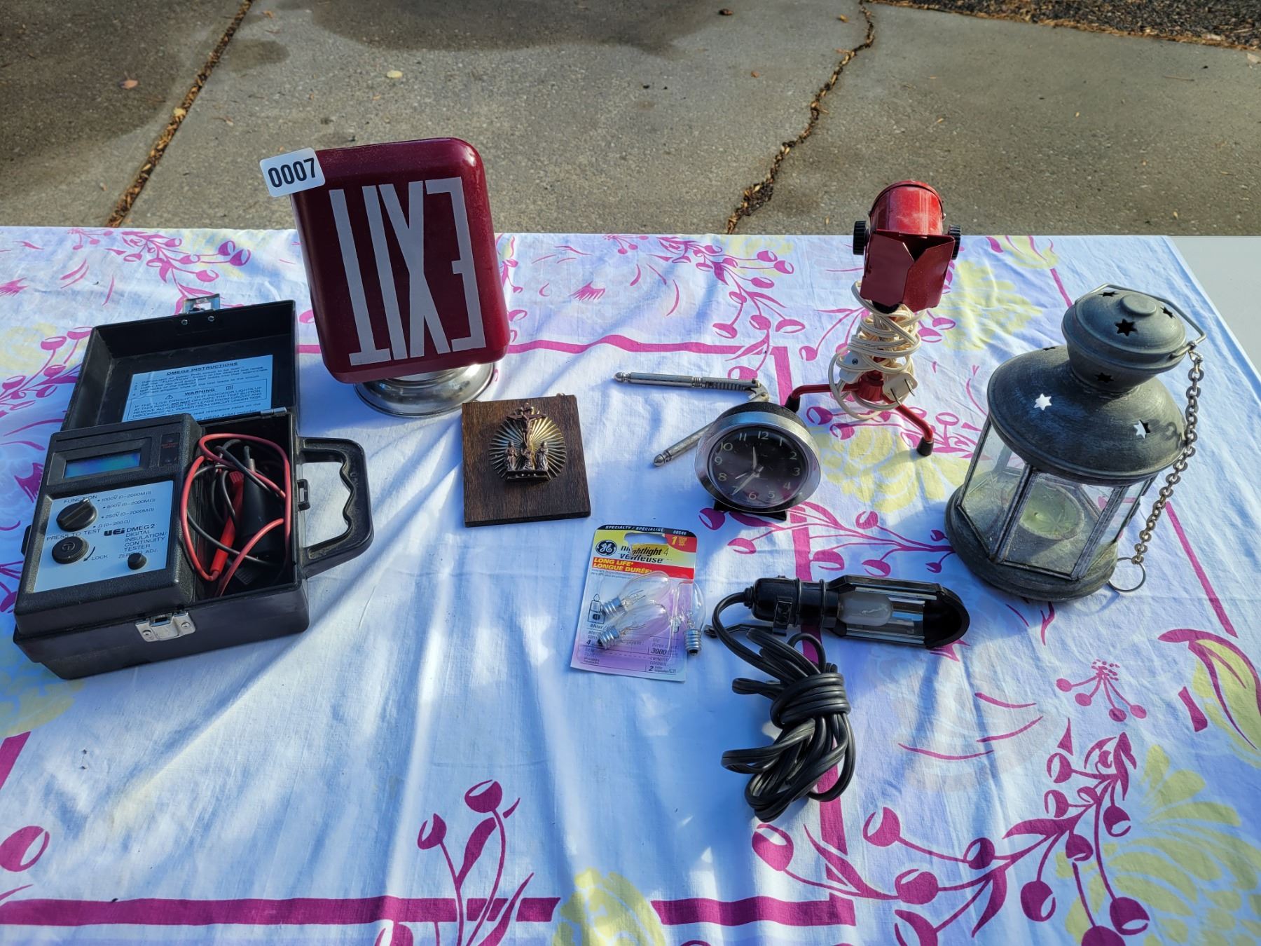Various Vintage Lights, Digital Insulation Tester, Lantern, Clock, Nut Cracker