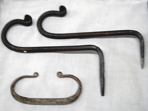 Various Wrought Iron Camping Hooks, longest measures 5.5'' x 3.5'', total of 5 hooks