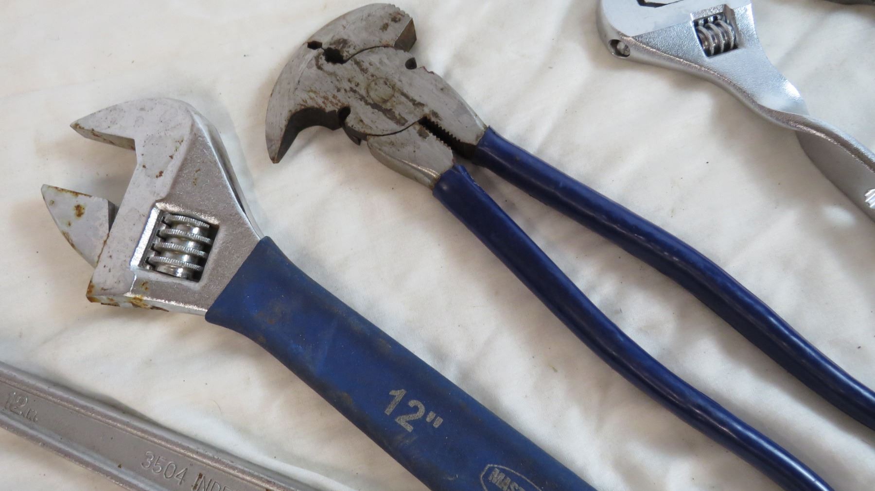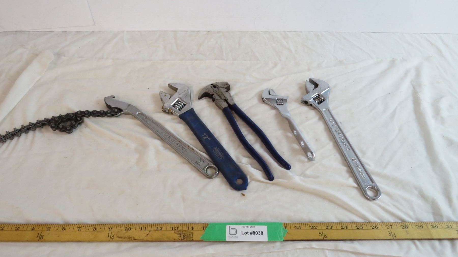 Various assorted wrenches- Ratchet strap and hammer wrench
