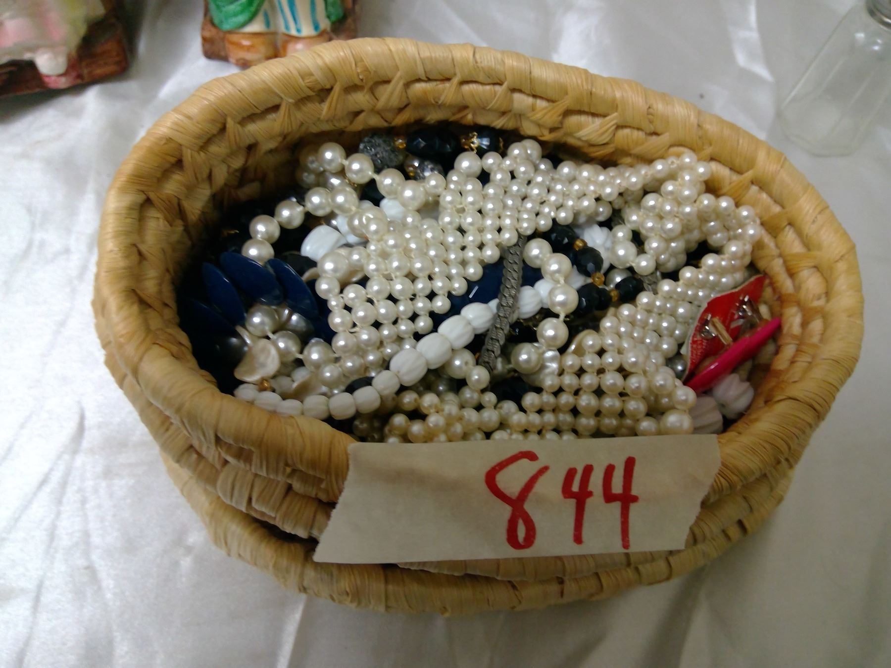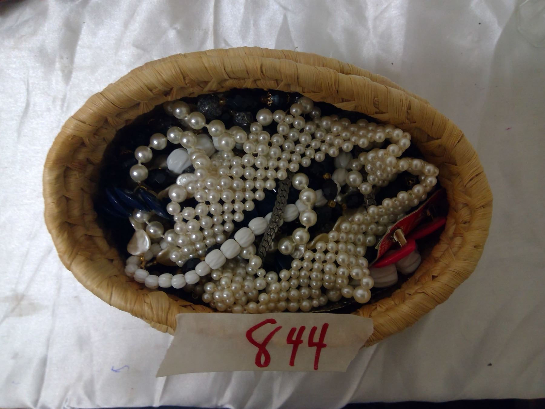 Various jewellry in wicker basket