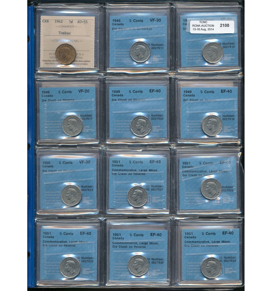 9. The cataloguer has taken every reasonable measure to ensure that all of the lots in this sale are as described and genuine. All raw coins and banknotes have been graded by the cataloguer or the auction house which represent our best professional opinion. To grade coins and banknotes, we use Canadian grading standards, 33 years of experience and good conscience. Grading is a subjective description in the opinion of the cataloguer or the auction house. Among experts there are often differences of opinion on the grading and the eye appeal of a coin. The strike and the state of preservation are often debated. TCNC acts as an agent between consignors and buyers. TCNC does not guarantee that any coin or banknote catalogued will meet the standards, or the grade, of any third party grading companies. No warranty, whether impressed or implied.