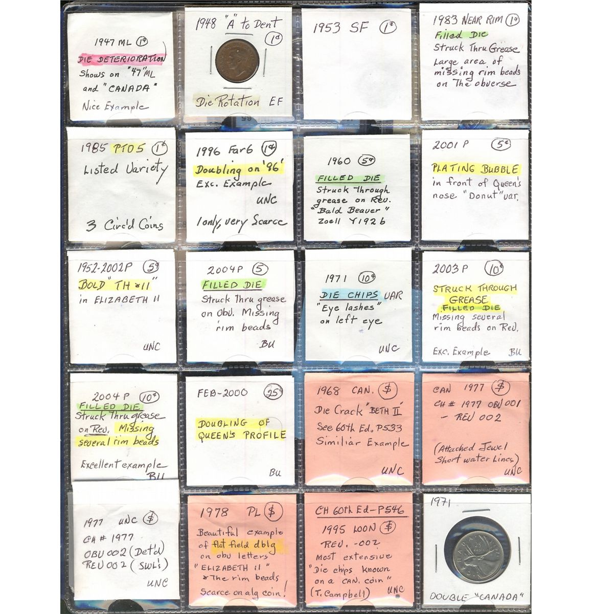 Variteties Lot; includes assortment of denominations 1¢ to Nickel Dollars all showing different types of variations, A to Dent, Doublings, Die Chips, Doubled Dates and more. Some certified coins included. An intersting of 24 coins. Should be viewed.