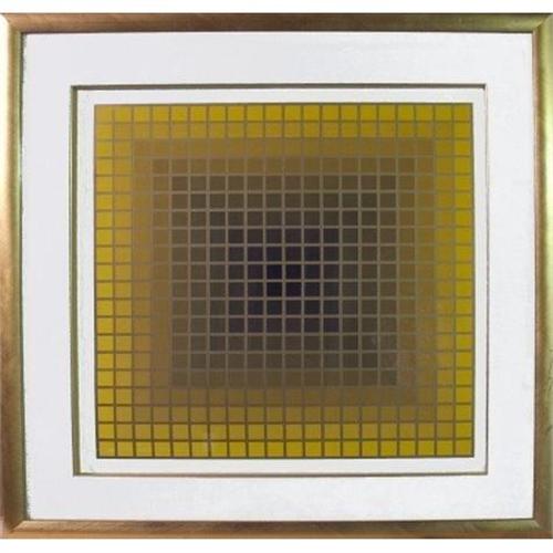 <tr><td>Title:Vasarely Gold & Green squares</td></tr>