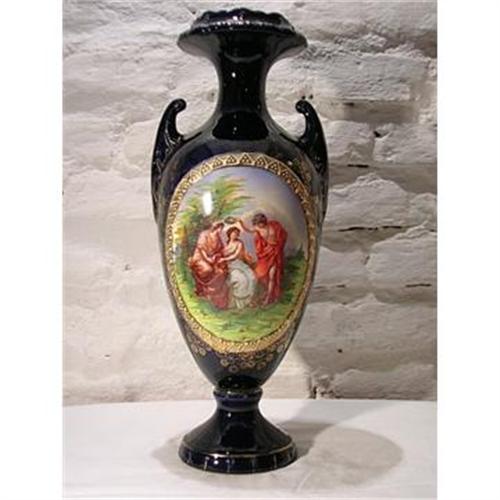 Beautiful large Vase from Czechoslovakia made with pottery, all in blue cobalt. With scene of 3 ladys in a garden. The back side, doesn?t have any draw, is all blue cobalt. Is in perfect conditions, without any crack or chip.