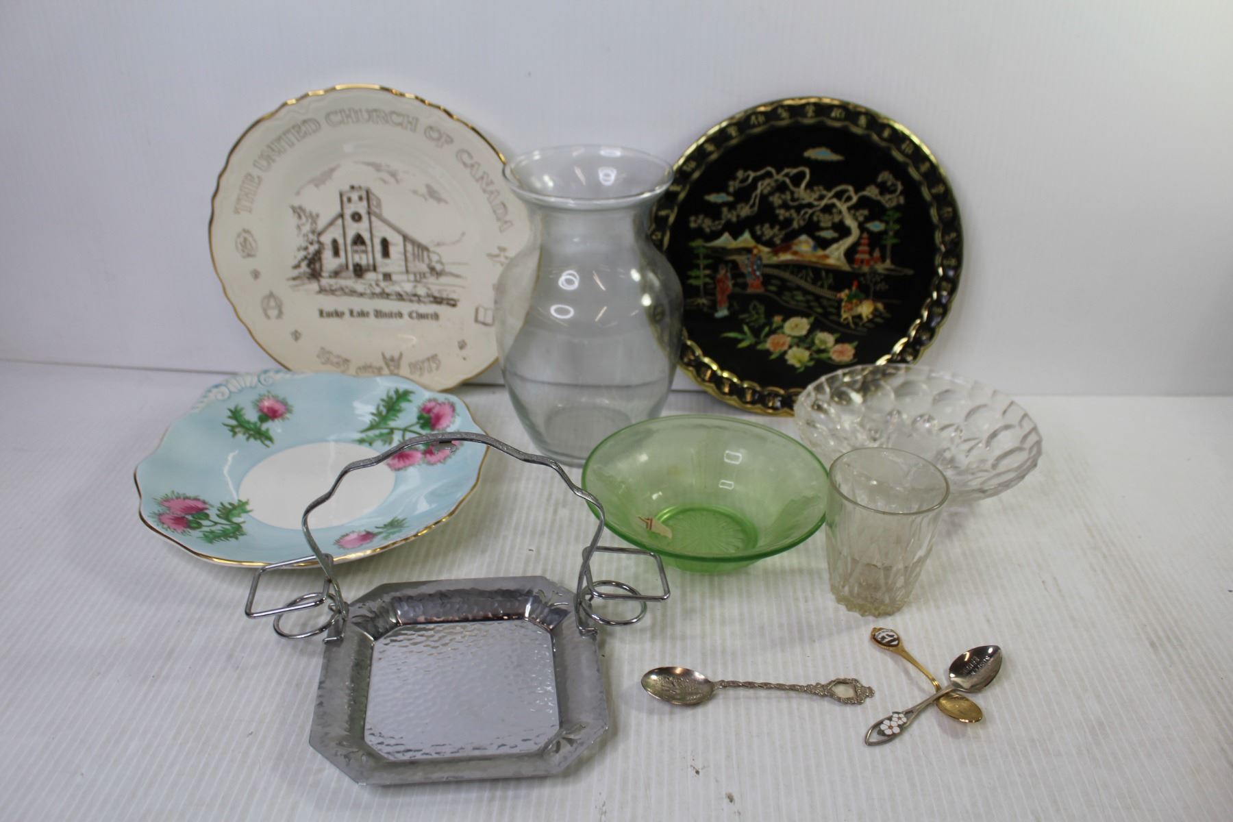 Vase, Glass, Bowls, Plates, Tray, Collector Spoons, etc.