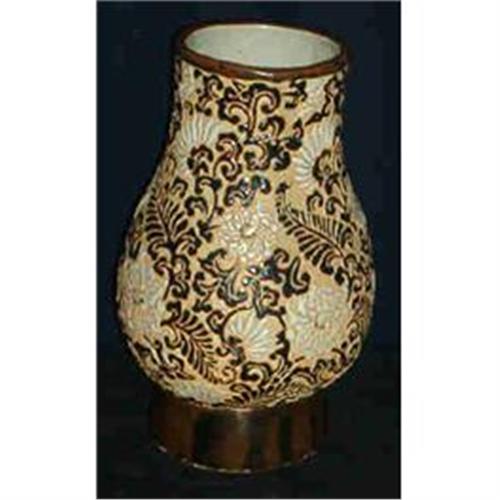 Pattern was hand incised, then enamelled then fired. Body is not glazed under the decoration. The inside is glazed, The Makers Mark is hand painted under the glaze on the base. It is beautiful.