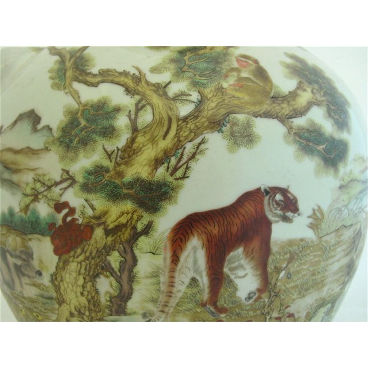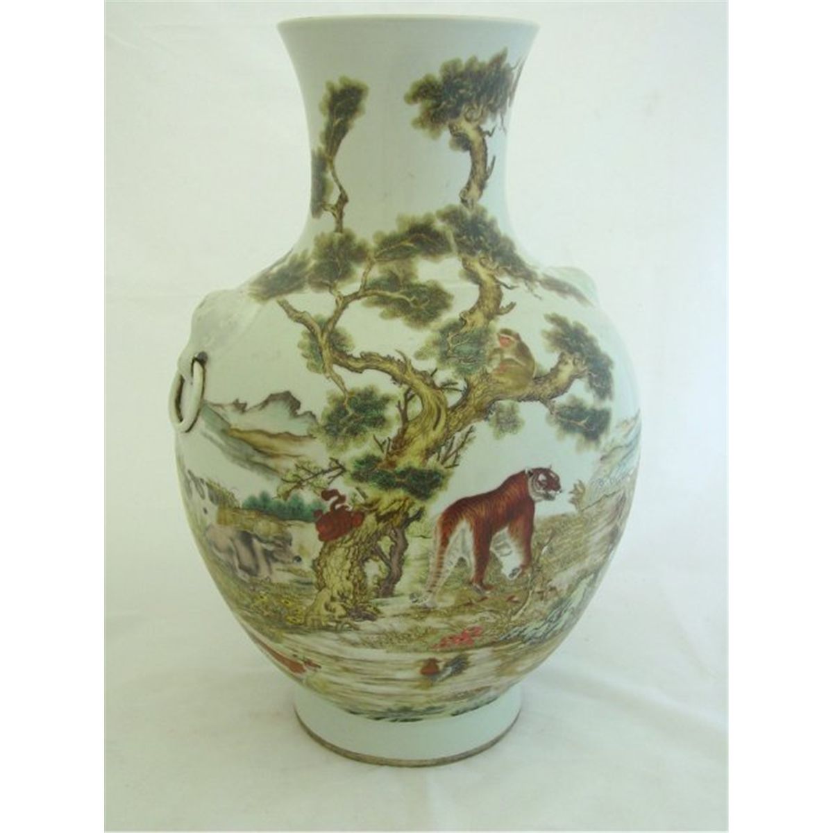With Ching Dynasty mark. Animals include: Dog, Monkey, Tiger, etc. Approx. 16" H x 8.5" Diam. Please read our terms of sale.