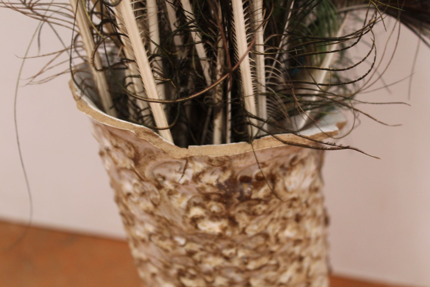 *Vase w/Peacock Feathers in Vase (vase is damaged)