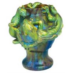 Vase with basilisks, Zsolnay, 1898-1900 <p>Form number: 5493, Height: 23 cm Marked with dotted circle mark and TJM family trade mark Restored, EUR 3 137