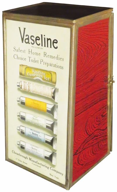 Vaseline Store Display. Beautiful color and graphics. Comes with two original product tins. Good original condition. 7 1/4 X 13 1/4 X 6 3/4 inches.