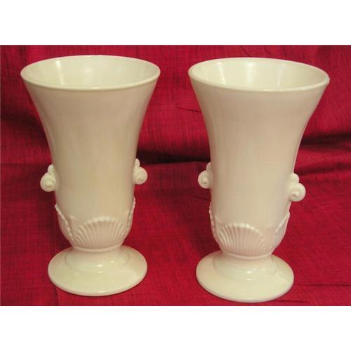 Beautiful pair of classically styled vases. Creamy white glass with simple, clean, elegant lines. Beautiful choice for the home or a gift.