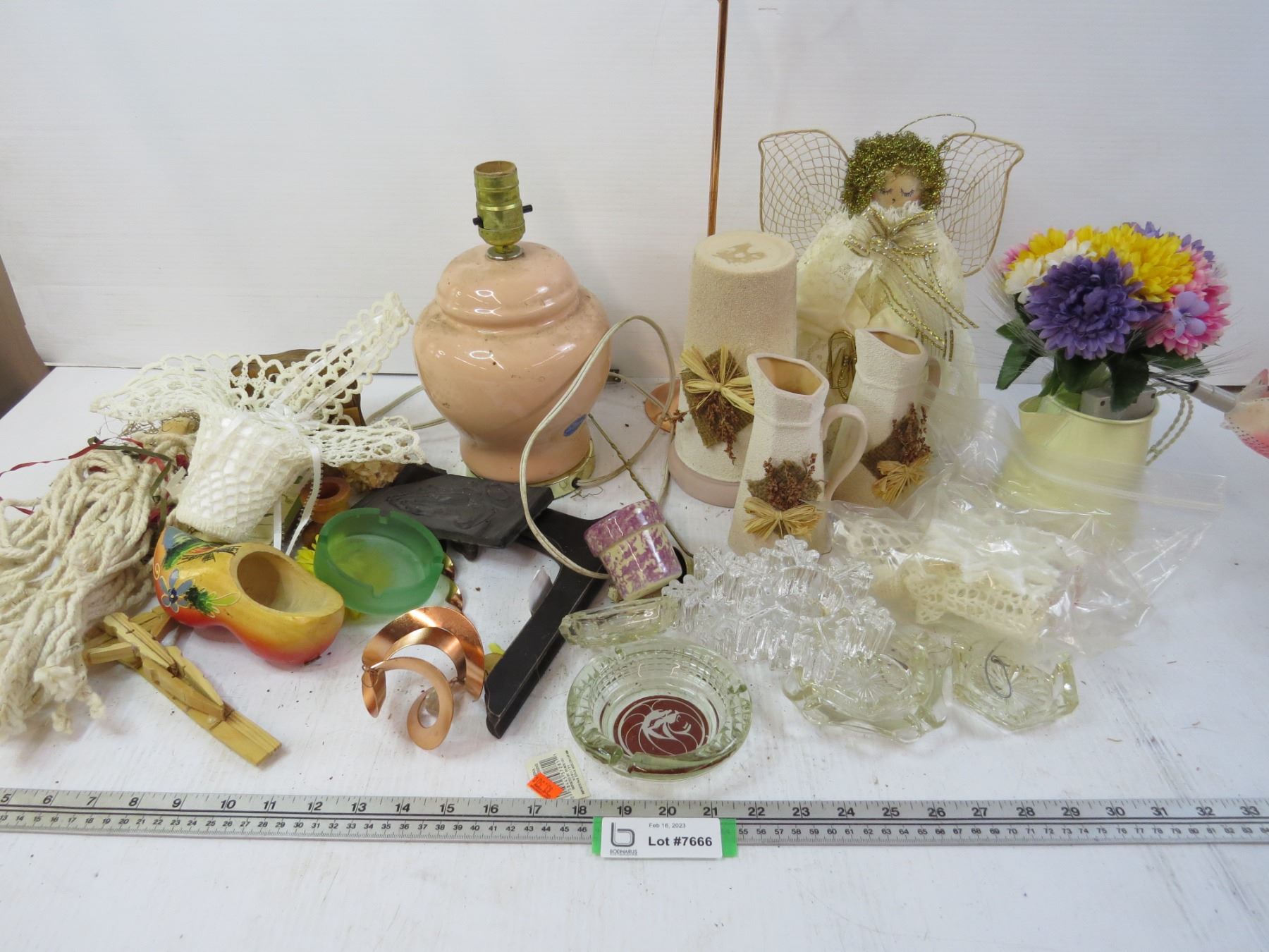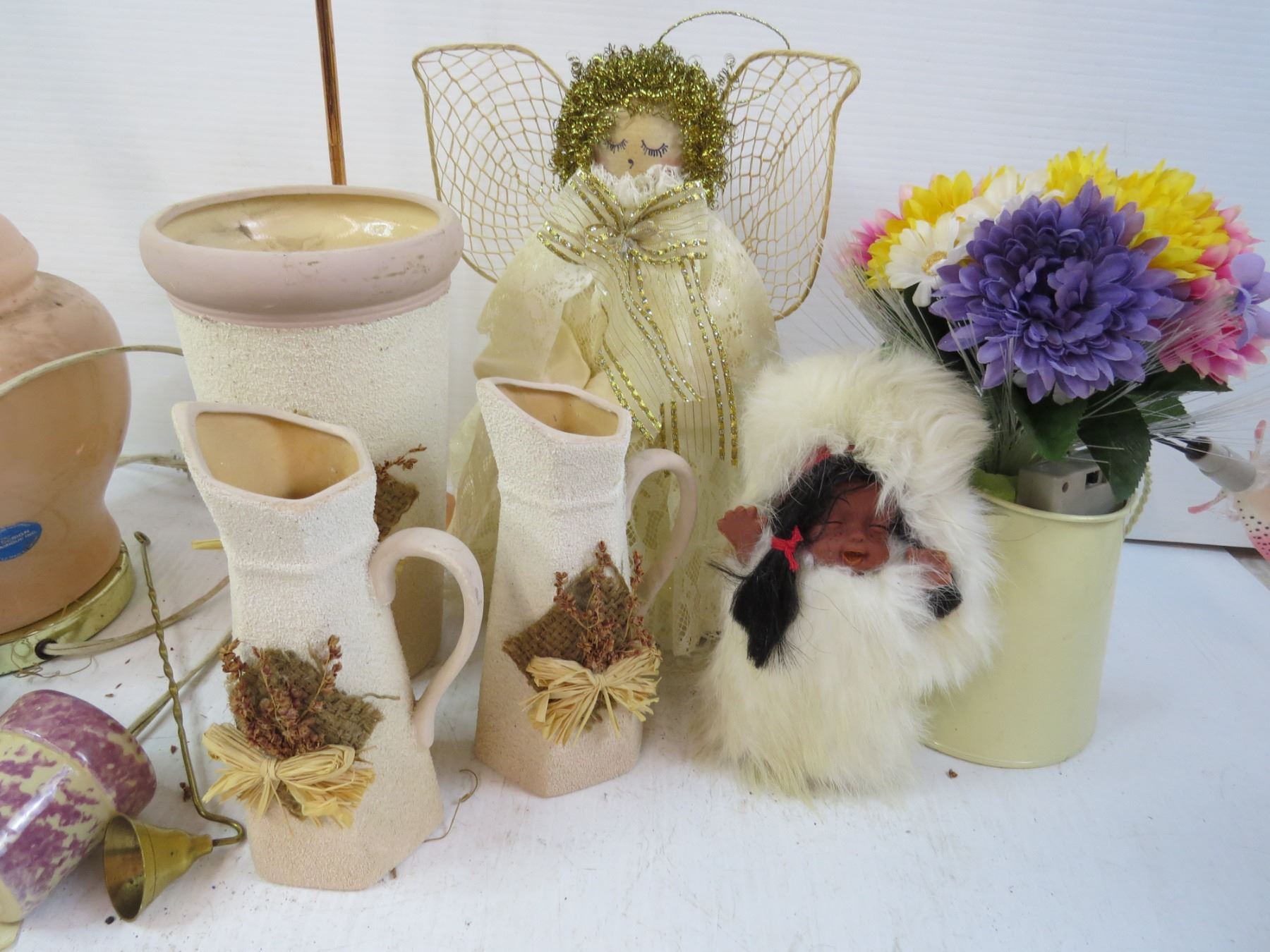 Vases - Glass Ashtrays - Eskimo Doll in Rabbit Fur - Lamp - Table Coasters - Assorted Items