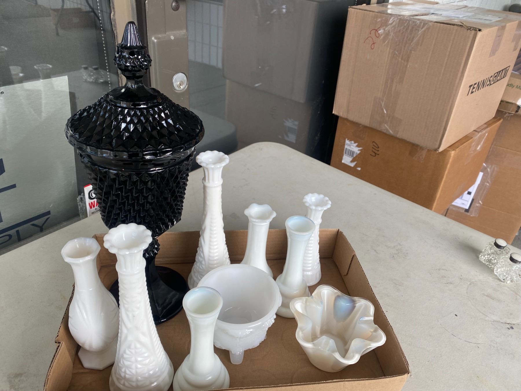 Vases and lidded dish